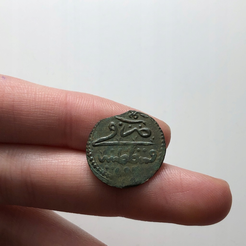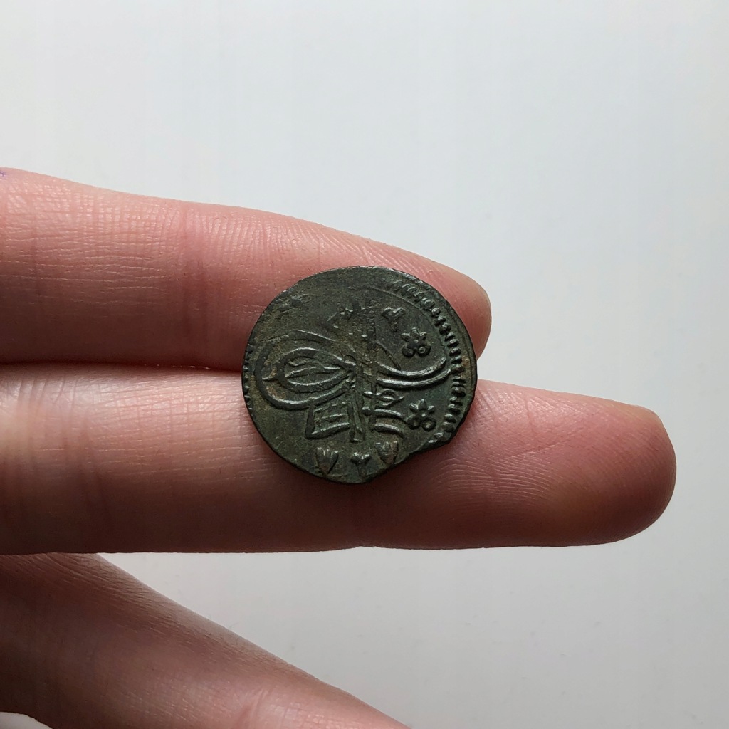 Moneta brązowa bita za panowania Sulejmana II (panowanie: 1687-1691 r.).