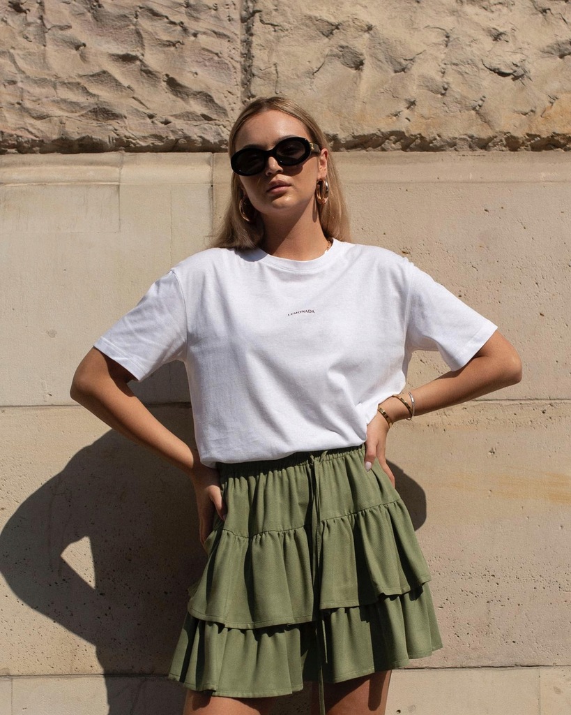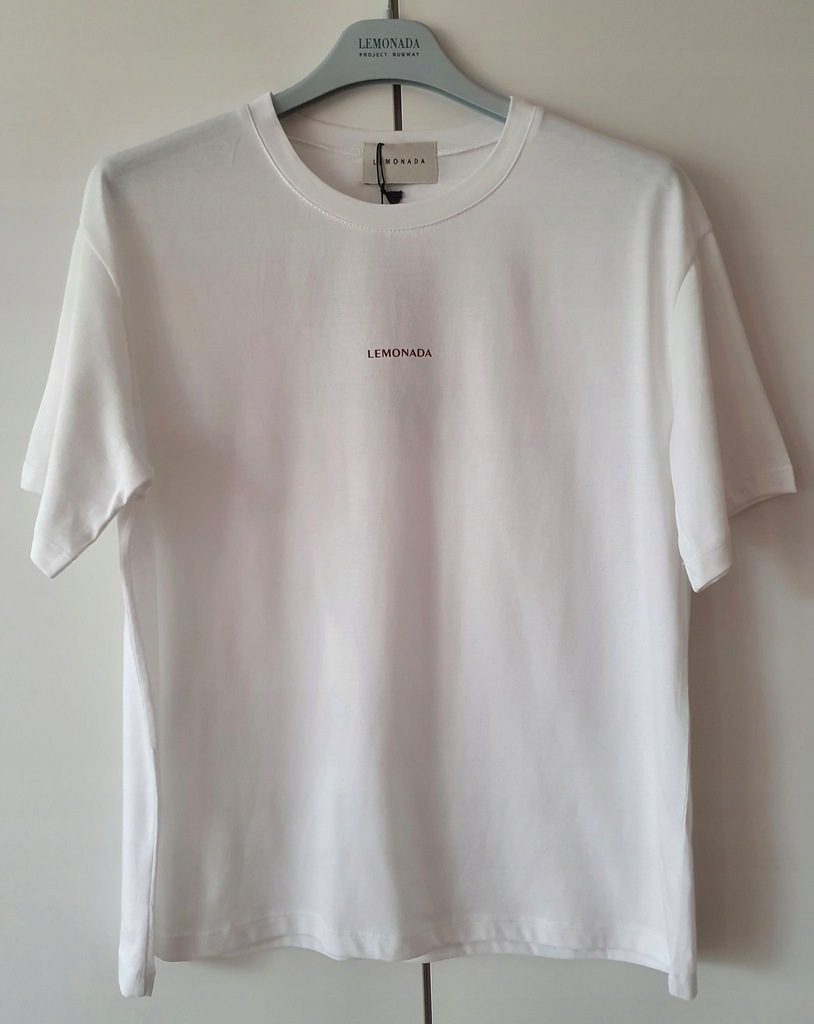 Biały, bawełniany t-shirt polskiej marki Lemonada z logo firmy, w rozmiarze uniwersalnym.