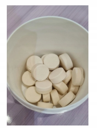 - Tabletki po rozpuszczeniu barwią wodę na zielony kolor