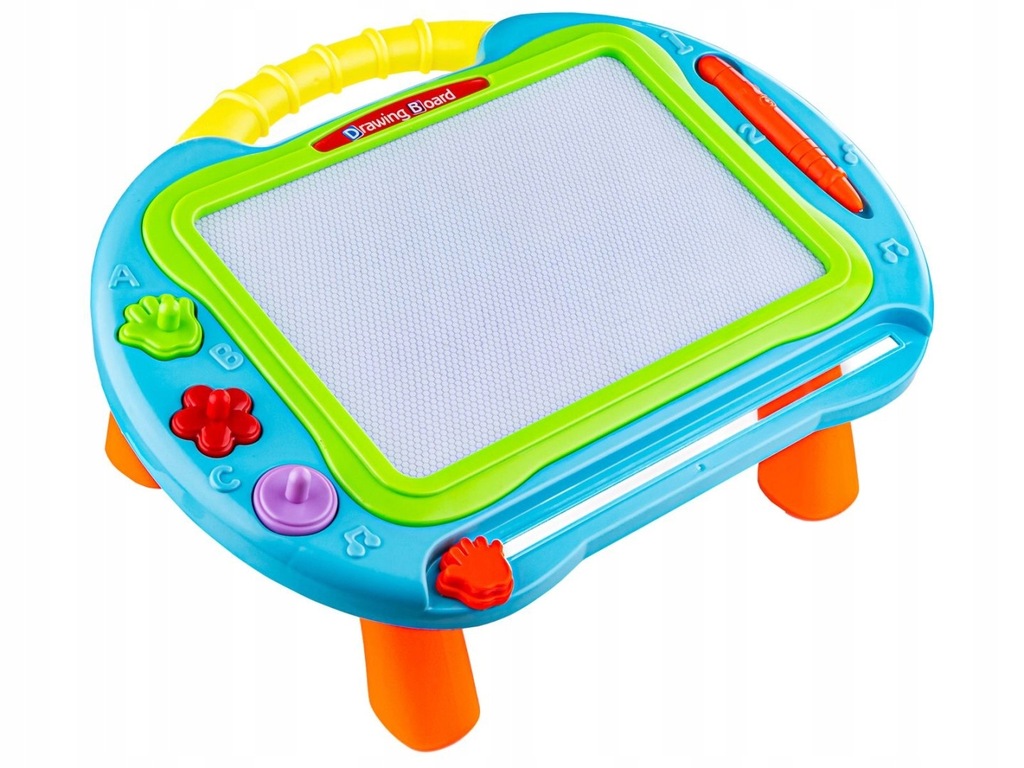 Nóżki w każdej chwili łatwo zdemontować. Tablica posiada także wygodny uchwyt co sprawia, że jest ona łatwa do przenoszenia. To świetny pomysł na zajęcie dziecka np. w samochodzie podczas dłuższej podróży.