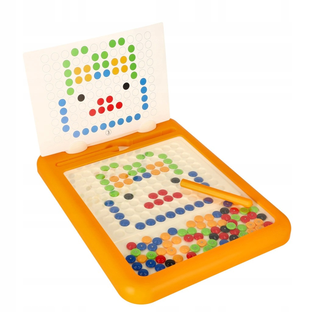- kreatywna zabawa - tablica zawiera kolorowe elementy magnetyczne i karty ze wzorami, które inspirują do tworzenia i stymulują kreatywność