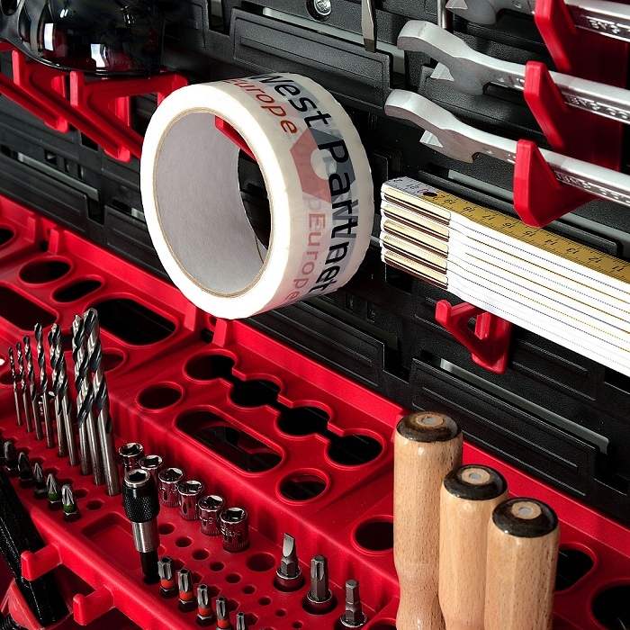 ⭐ Wytrzymałe półki narzędziowe oraz uchwyty pomagają w przechowywaniu dłuższych narzędzi tj. wiertarka, klucze, młotek, kombinerki czy śrubokręty.