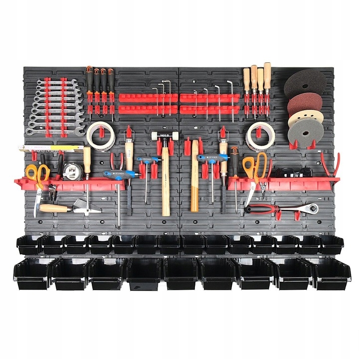 Tablica Narzędziowa Ścianka Warsztatowa 115x78 cm + 32 Kuwety oraz Uchwyty ⭐⭐⭐⭐⭐