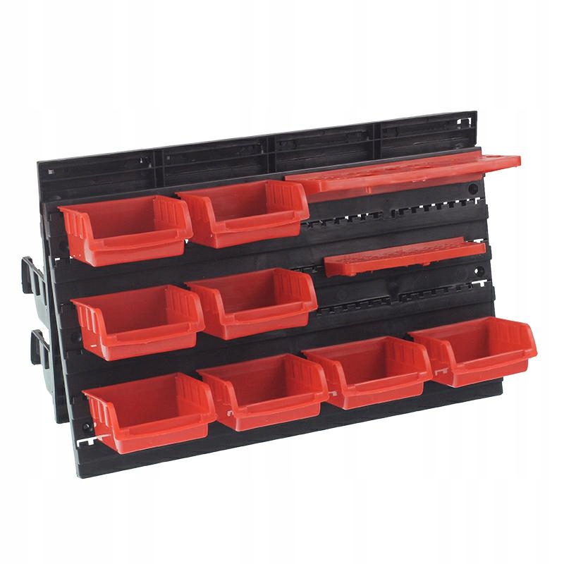TNW46EL, GMP110519 Tablica na narzędzia ze wszystkimi uchwytami i kuwetami, to podstawowy sposób na uporządkowanie miejsca pracy, pozwala zachować przejrzystość i ład w narzędziach i akcesoriach. Cały zestaw jest mobilny, można go dowolnie konfigurować i przemieszczać. Zestaw posiada otwory montażowe, zapewniając szybki i łatwy montaż na ścianie. Zestaw zawiera: - 12 kuwet - 160mm x 102mm x 75mm - 16 kuwet - 100mm x 100mm x 50mm - 4 pojedyńcze tablice - 475mm x 272mm x 50mm (możliwość konfiguracji we własnym zakresie) - 14 uchwytów na narzędzia