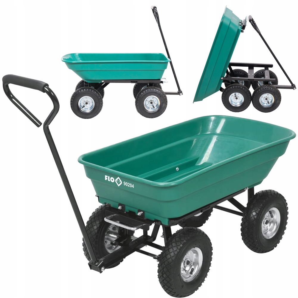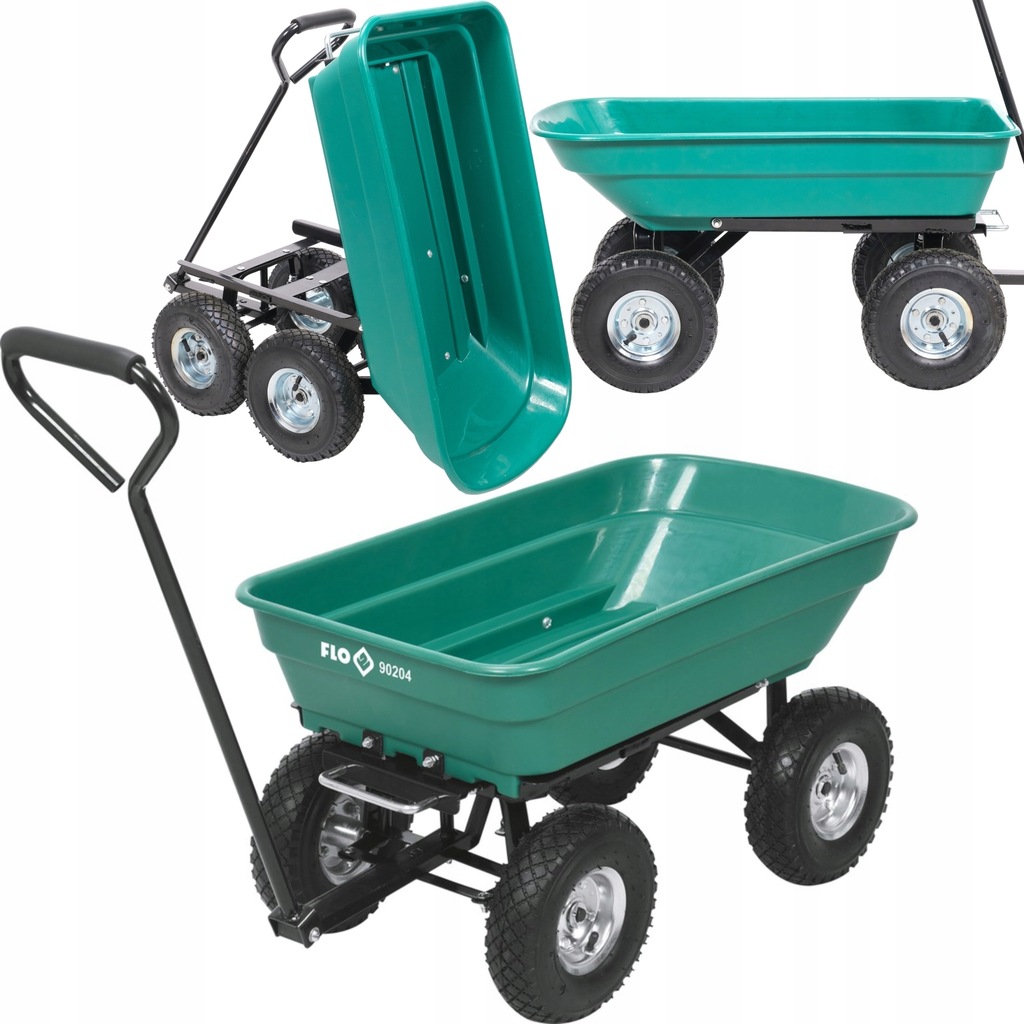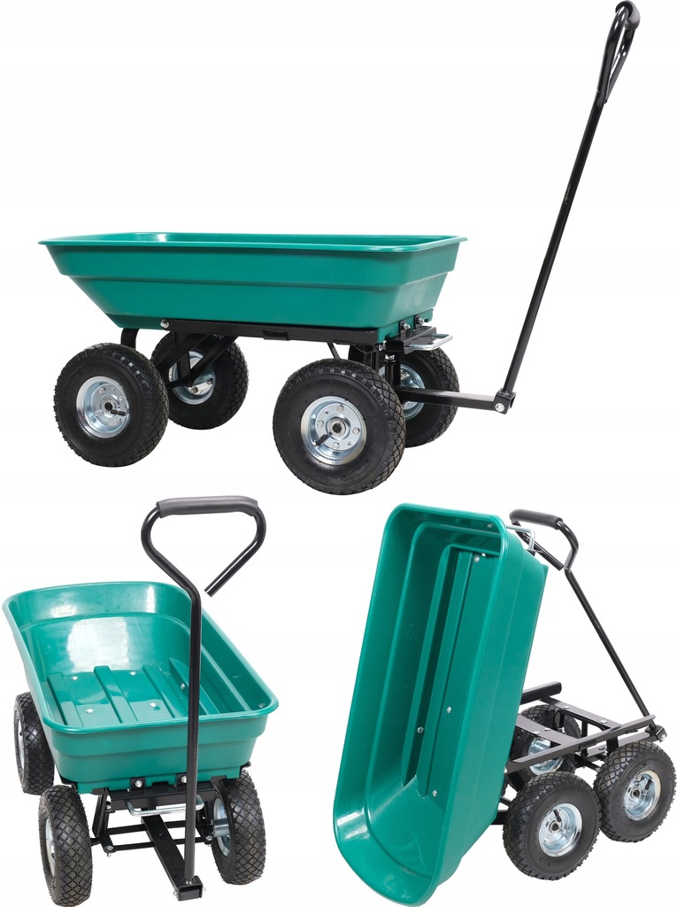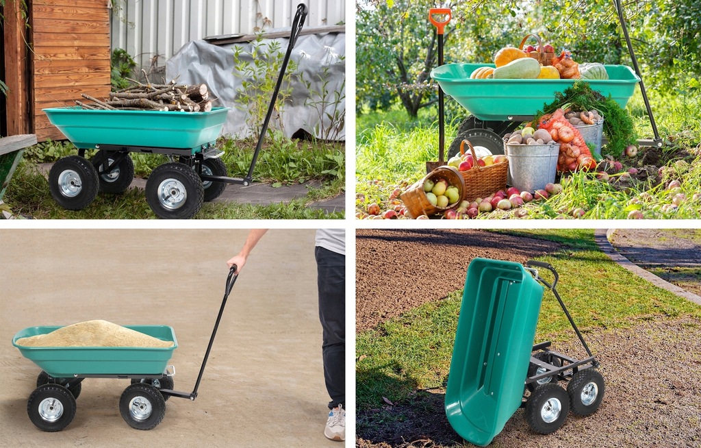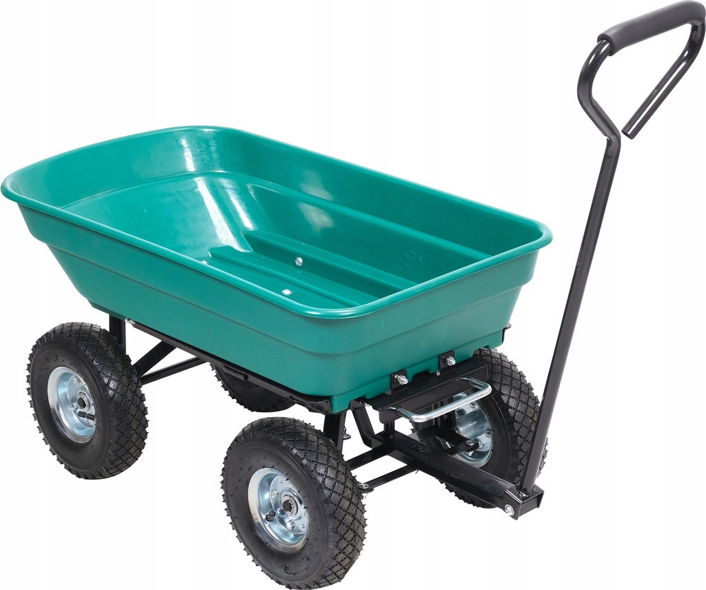 Uniwersalny wózek do prac przydomowych z funkcją wywrotki. Do transportu: drewna, liści, skoszonej trawy, worków z ziemią, nawozów etc.