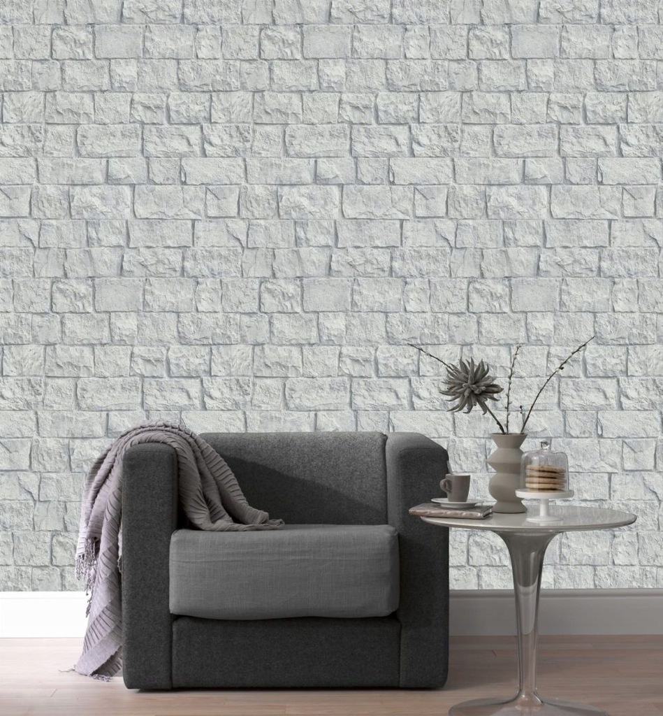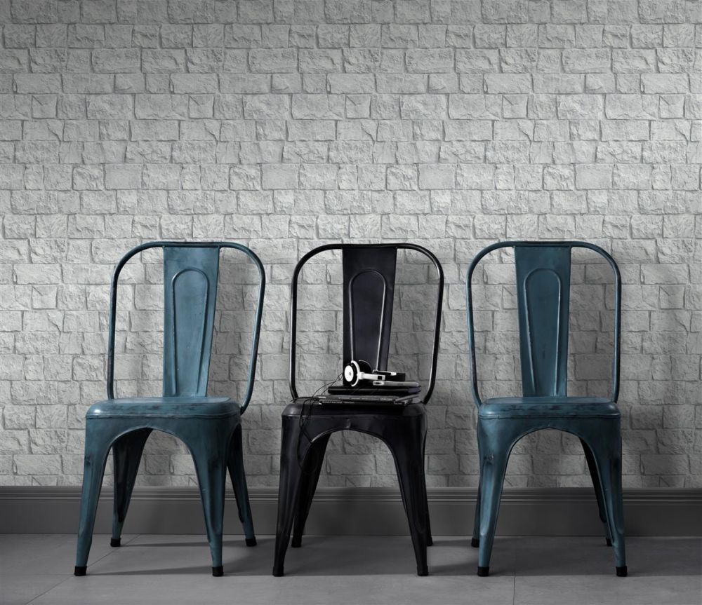 - Tapeta o zróżnicowanej strukturze i cieniowanej kolorystyce idealnie zatuszuje nieduże nierówności na ścianie