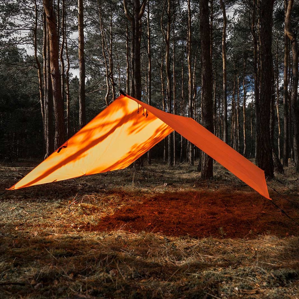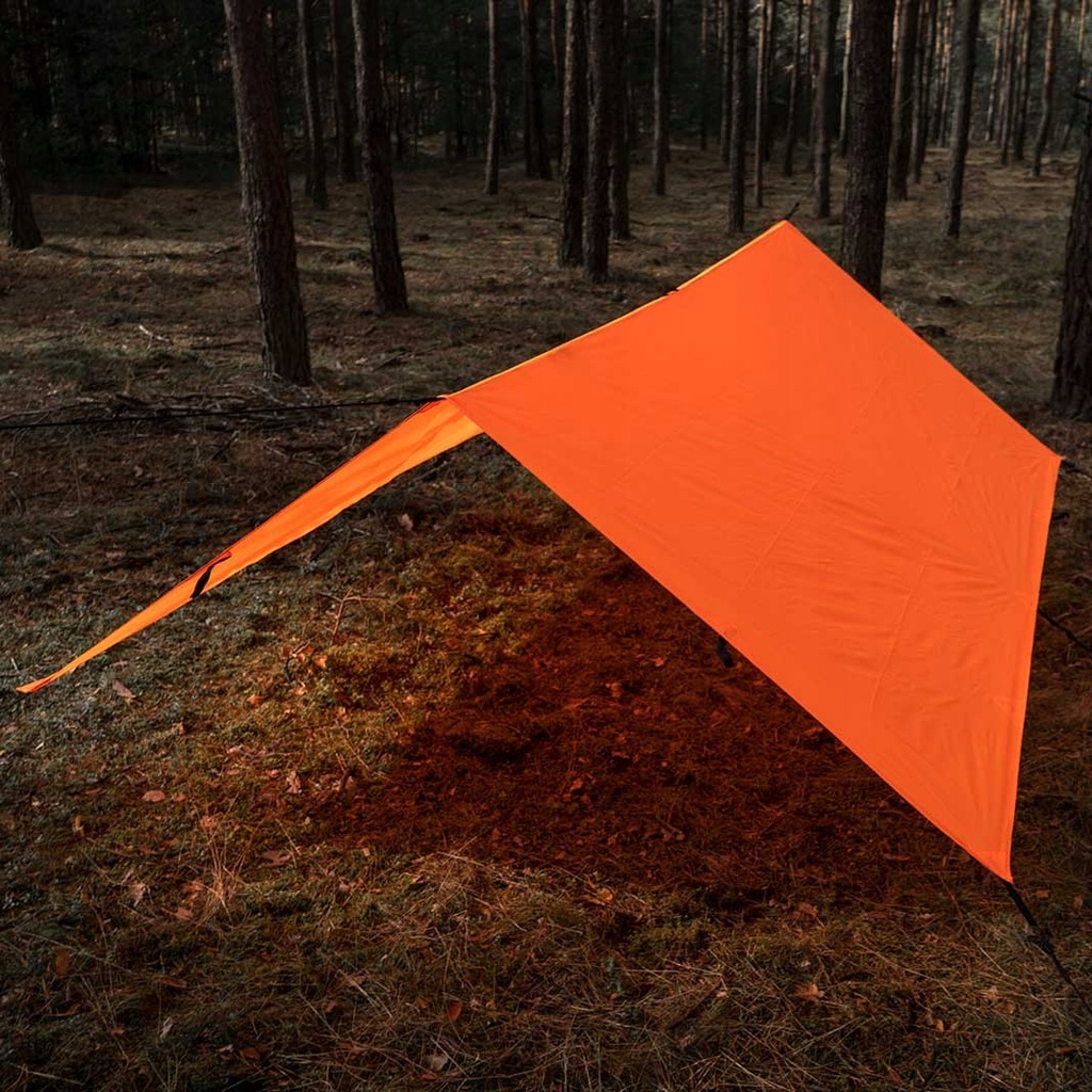 Dla każdego pasjonata trekkingu waga i objętość wyposażenia jest kluczowym elementem determinującym komfort. Tarp TigerWood to doskonała alternatywa dla namiotu, pozwalająca radykalnie ograniczyć masę przenoszonego sprzętu, jednocześnie zapewniając komfort podczas nocnego wypoczywania. Brak stelaża połączony z jednowarstwową konstrukcją sprawia, że tarp jest niezwykle prosty, a co za tym idzie wyjątkowo lekki. Jego wszechstronność natomiast pozwoli nam przygotować różne rodzaje schronień, zarówno samodzielnych jak i na przykład do użycia z hamakiem. Wersja Rescue w intensywnym pomarańczowym kolorze, przydatną podczas nocowania w trudnych warunkach atmosferycznych.