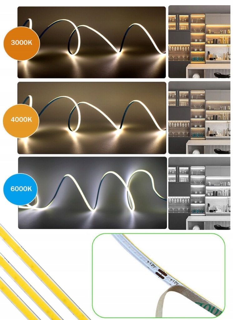 ⏩ PRZYKŁADKOWE ZASTOSOWANIA TAŚMY LED COB 5mm IP20 ☂️