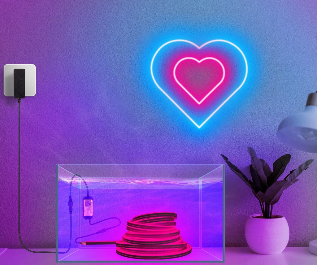Taśma LED RGB neon IP68 z wodoodpornym kontrolerem WiFi i funkcją pamięci: Taśma LED neonowa o napięciu 24 V jest bezpieczna, wodoodporna, z klasyfikacją IP68. Kabel wyjściowy zasilacza i kabel wejściowy kontrolera mają długość 1 m, a kabel i kontroler zostały poprawione, aby były wodoodporne (zasilacz nie jest wodoodporny). Nadaje się do użytku na zewnątrz, np. w altanach, ogrodzie, patio, markizach, balustradach, gzymsach itp., a także do wnętrz: sypialnia, salon, pokój zabaw, bar itp.