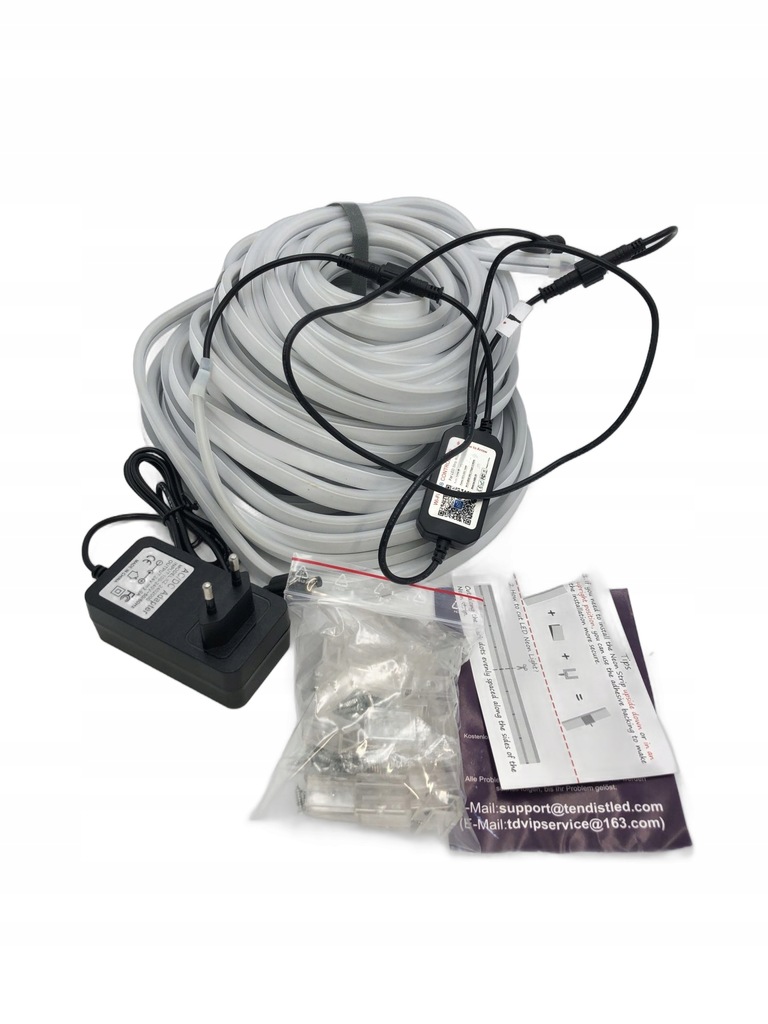 Uwaga: Taśma LED RGB neonowa jest dostarczana z wystarczającą ilością przezroczystych zaczepów i śrub, co ułatwia i upiększa instalację (brak samoprzylepnego tła). Aby osiągnąć maksymalny efekt wodoodporny, należy mocno dokręcić wodoodporny zaczep na łączniku, zasilacz nie jest wodoodporny.