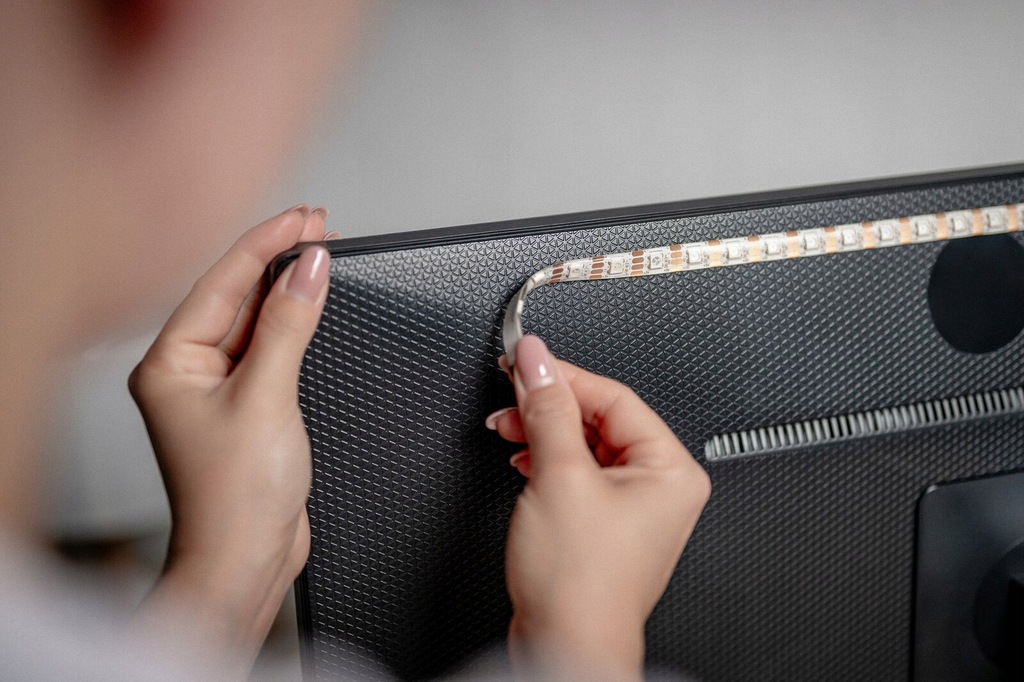 Połączenie LED-owych pasków z Twoim monitorem zajmie zaledwie kilka minut. Nie wymaga to sięgania po żadne dodatkowe narzędzia. Zastosowanie mocnej taśmy renomowanej firmy 3M to gwarancja solidnego połączenia na lata. Urządzenie spełnia też normę IP44. Oznacza to, że LED-y są chronione przed ciałami stałymi o średnicy 1 mm lub większej, a także przed bryzgami wody.