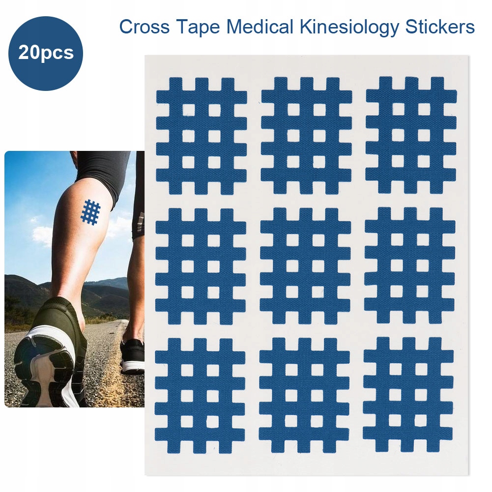 20 sztuk / zestaw Taśma krzyżowa Naklejki kinezjologiczne medyczne Papiery sportowe Niebieskie