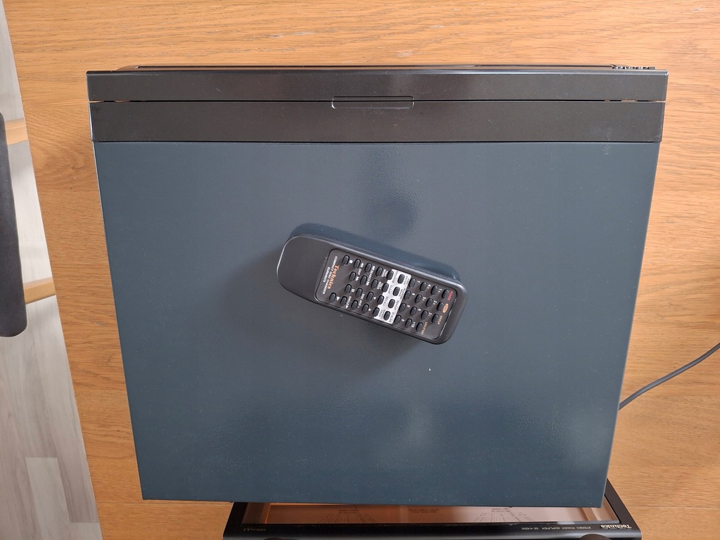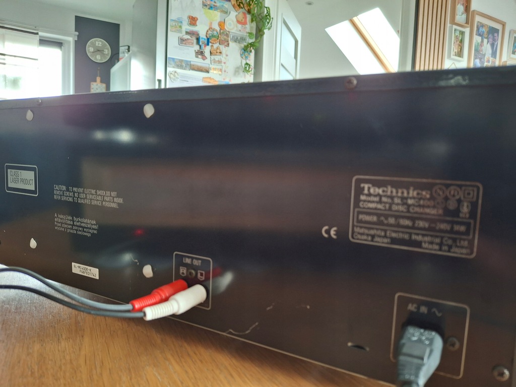 Technics zmieniarka CD SL-MC400 z nowym pilotem jak na zdjęciu. Technicznie egzemplarz w pełni sprawny odtwarza bez przeskakiwania. Podświetlenie działa. Kabel zasilający w komplecie. Optycznie przód stan bardzo zadbany. Obudowa została kiedyś przemalowana, taki już kupiłem. Jak stoi w szafce to nie widać, ale ze względu na to cena niższa od rynkowej