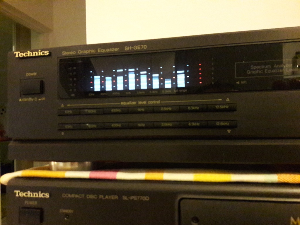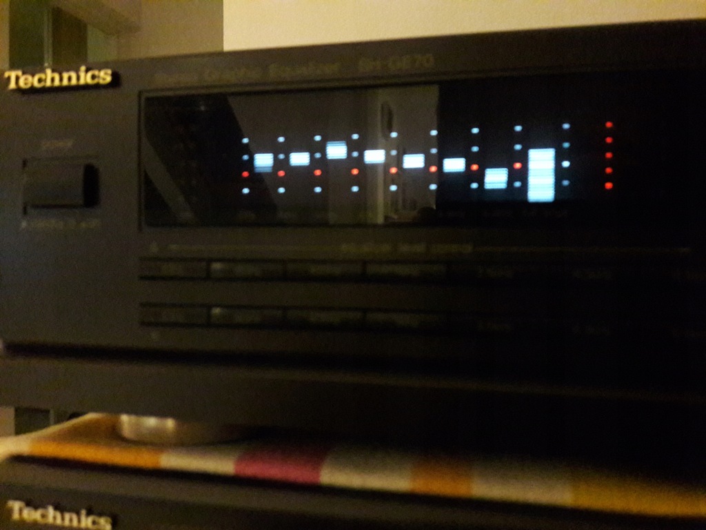 Technics korektor SH-GE70 technicznie idealny. Optycznie przód w stanie zadbanym. Słupki działają i pokazują ładnie. Obudowa ma ślady użytkowania jak rysy.