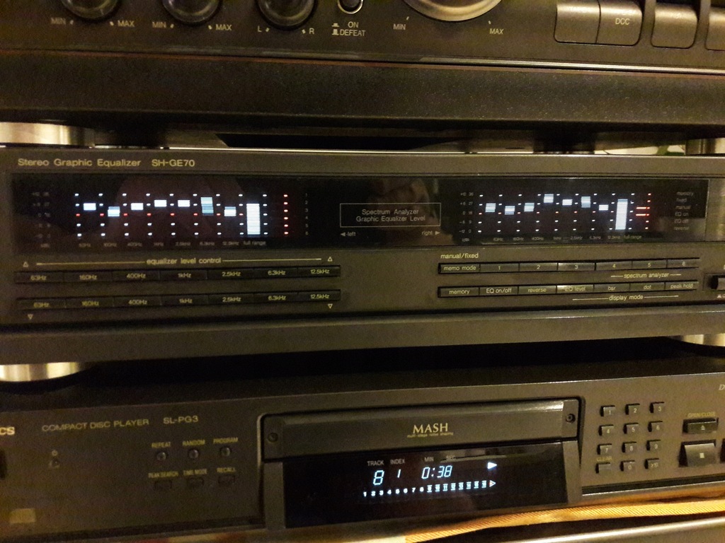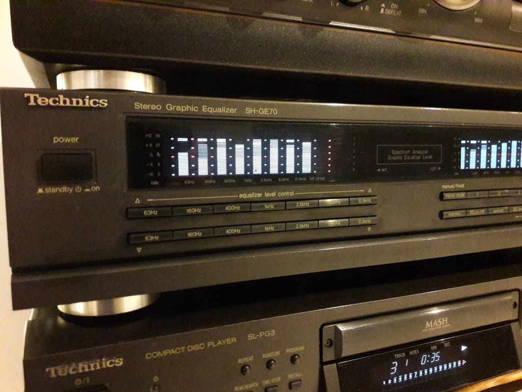 Technics korektor SH-GE70 technicznie idealny optycznie idealny wyświetlacz słupki są wyraźne i świecą równomiernie. Obudowa z lekkimi śladami używania.