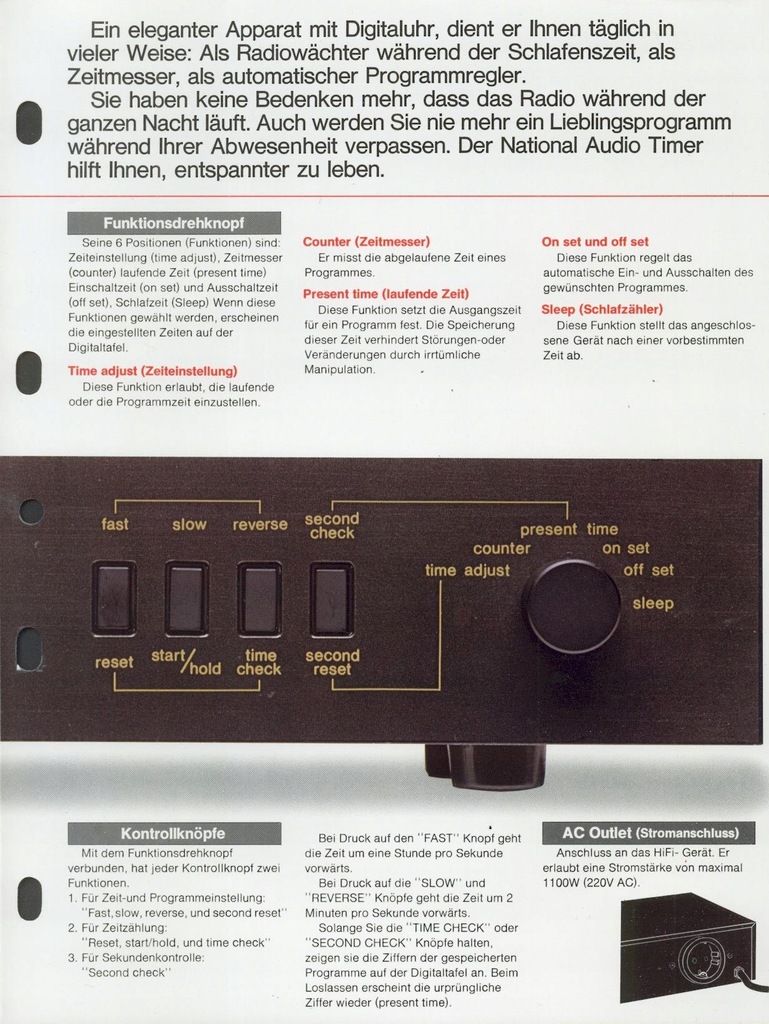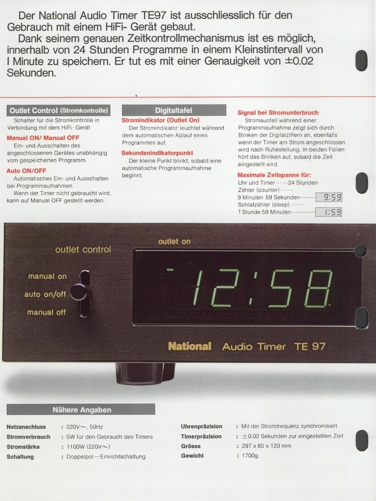 Zegar elektroniczny z timerem, umożliwia zaprogramowanie włączenia/wyłączenia zestawu audio do - uwaga -1100 W obciążenia !!!