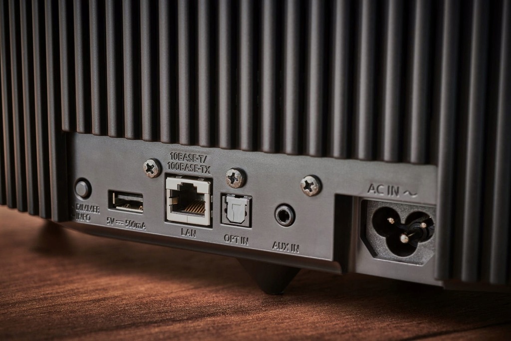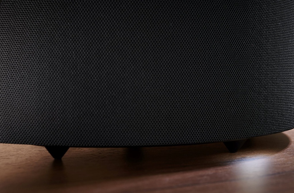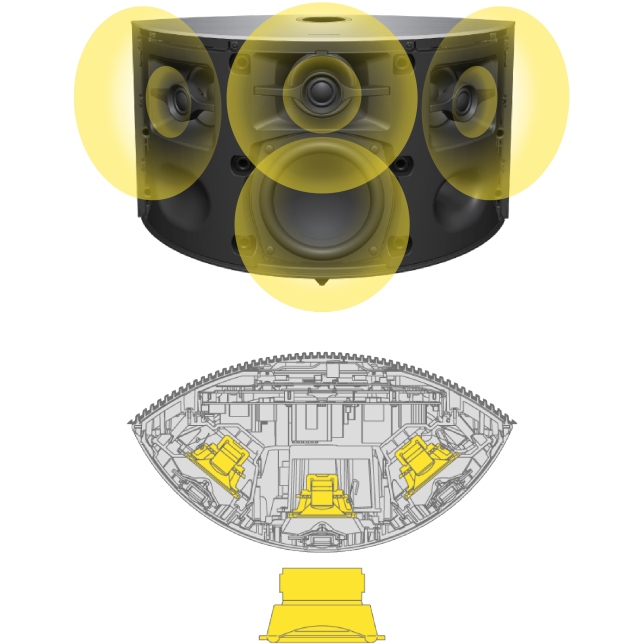 Trzy głośniki wysokotonowe o średnicy 1,6 cm emitują wysokiej jakości dźwięk do 50 kHz. Głośniki te zostały połączone ze skierowanym do przodu subwooferem 12 cm z długim skokiem membrany i prostym, długim portem o dużej średnicy. Łącznie 7 głośników w sztywnej konstrukcji wzmocnionej włóknem szklanym emituje mocne brzmienie z 3.1-kanałowego wzmacniacza.