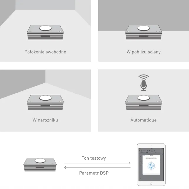 Precyzyjna regulacja za pomocą aplikacji Technics Audio Center (na urządzeniu z systemem iOS) Aplikacja pozwala mierzyć i kompensować charakterystyki częstotliwościowe.