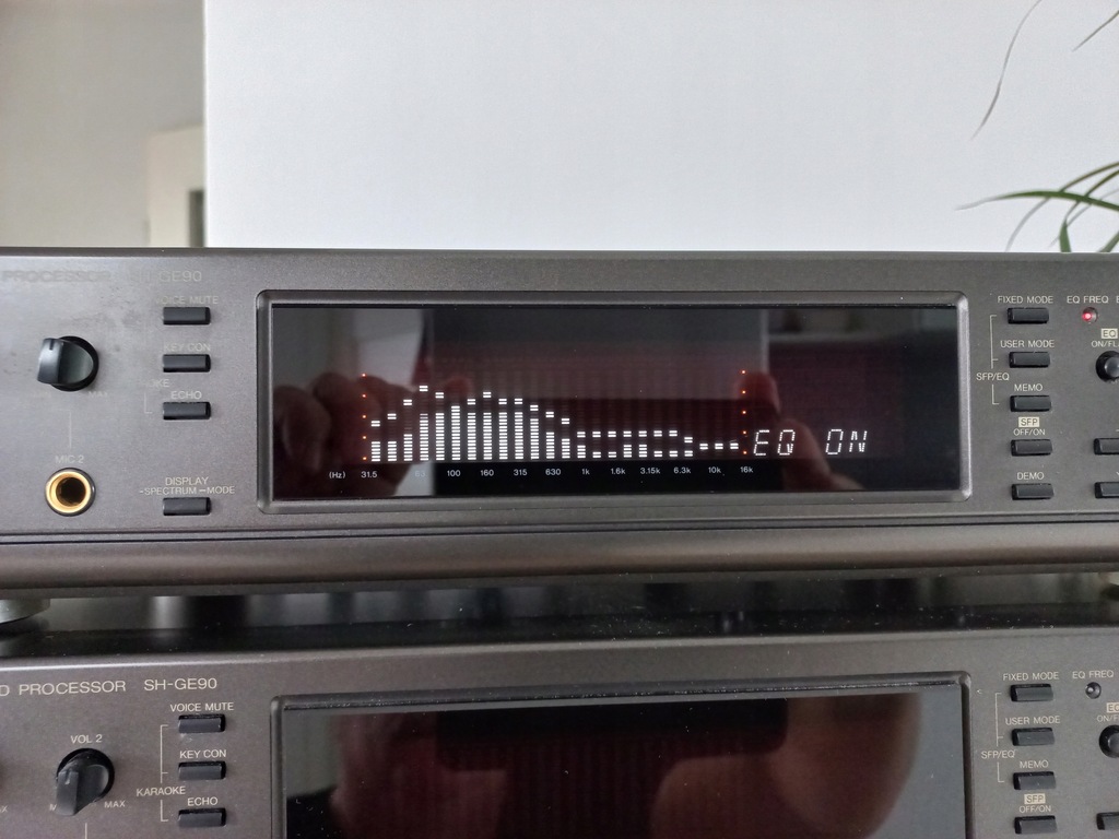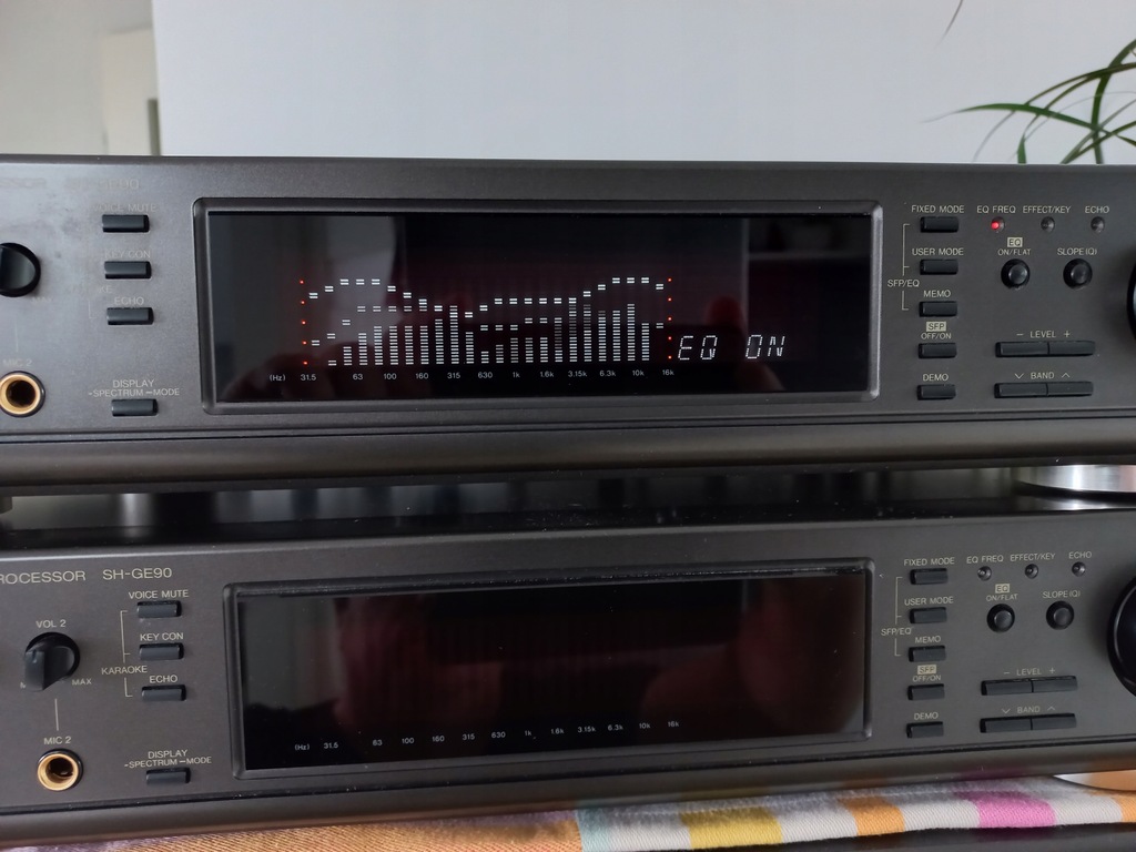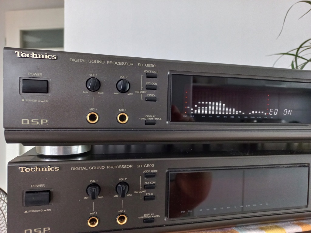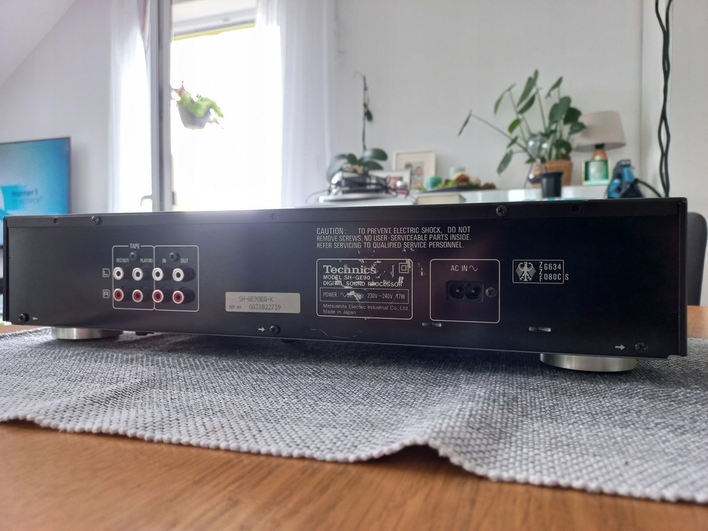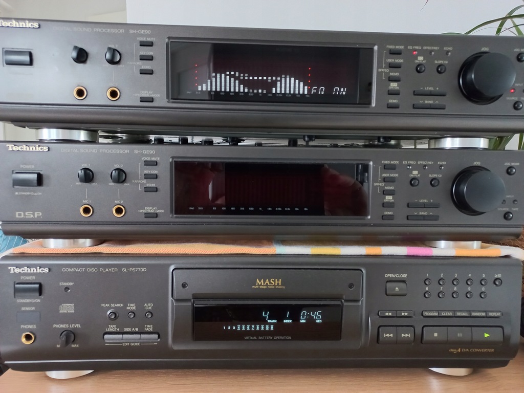 Technics korektor procesor SH-GE90 w stanie technicznym bardzo dobrym. Front, wyświetlacz stan optyczny bdb. Obudowa ma porysowania ślady użytkowania. Kabel zasilający w zestawie. Oferowany jest tu tylko górny element zestawu.