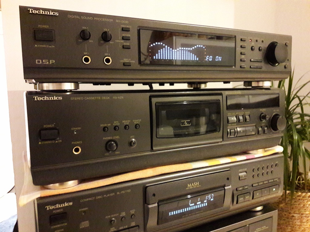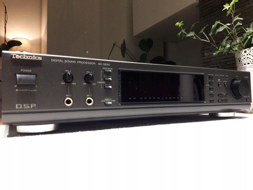 Technics procesor SH-GE90 technicznie wszystko funkcjonuje jak należy wyświetlacz czysty i wyraźny. Przód stan idealny jak nowy na obudowie jedna rysa od góry widoczna na zdjęciu. Kabel zasilający i 2 wartościowe cinche w zestawie.