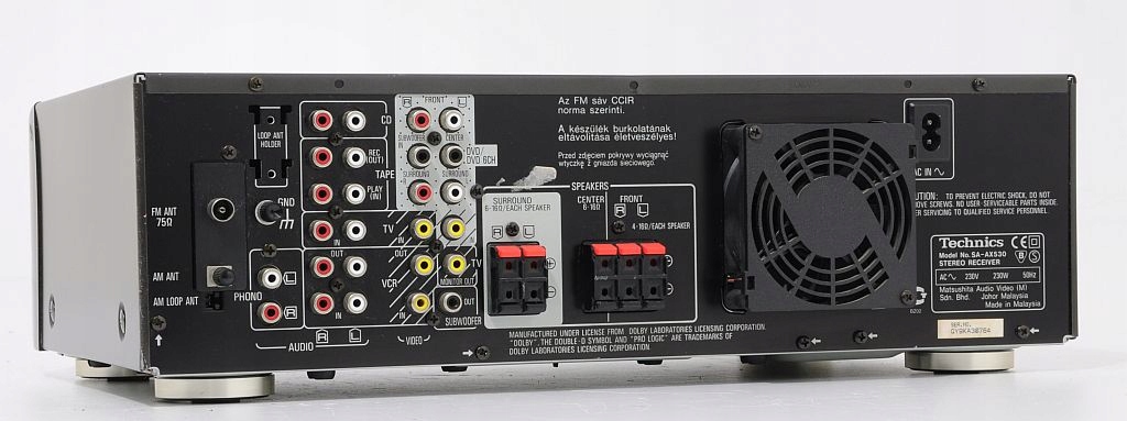 Solidny amplituner firmy Technics. Wyposażony w sytemy Dolby Pro logic Surround. Dzięki wejściu 6cio kanałowemu czincz możemy podpiąć DVD z najnowszymi systemami i tak zdekodowany dźwięk popłynie na nasze kolumny w kinie domowym. Tryb Stereo 80W na kanał wiec wystarcza to do wysterowania nawet dużych kolumn. Jeśli chodzi o dźwięk to mamy to do czego przyzwyczaił nas Technics – czyli świetna czystość z mocnym fundamentem basu. Polecam - satysfakcja gwarantowana.