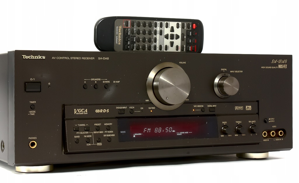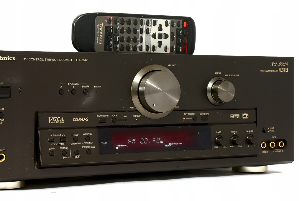 SA-DA8 jest jednym z najlepszych modeli Technicsa. Rozwiązania, które w nim zastosowano sprawiły że zdobył uznanie audiofilów oraz dobre recenzje fachowych pism audio-video. Zdobył wiele nagród i wyróżnień. I faktycznie nie bez powodu. Już na pierwszy rzut oka urządzenie budzi respekt, jest ono bardzo masywne. Końcówki mocy oparte zostały na układach MOSFET, przy czym działają one w całkiem nowym systemie VGCA ( znanej z referencyjnego modelu SU-C3000 ). Przyczynia się to do wysokiego odstępu sygnału od szumu - Technics podaje wartość wyższą niż 113dB - co pozwala na zasowanie w systemach DVD-Audio. Transformator zbudowano specjalnie zmyślą o tym amplitunerze i charakteryzuje się niezwykle równomiernym rozkładem pola magnetycznego. Zastosowano w nim jeszcze szereg unowocześnień, innowacji i udoskonaleń. Wszystko to po to, aby po podpięciu kolumn użytkownik poczuł się wyjątkowo, jakby kino przyszło do niego i to w najlepszym wydaniu.