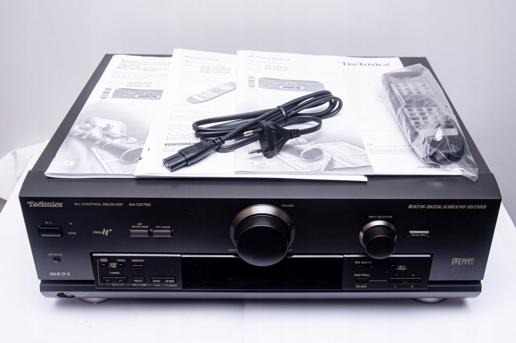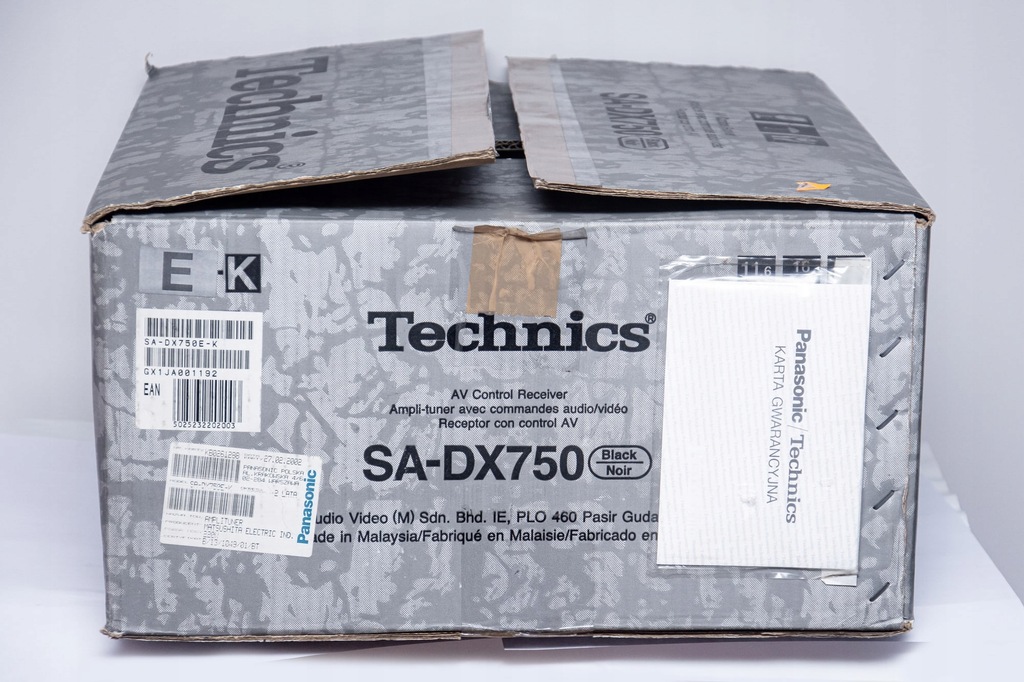 Technics SA-DX750 Witam, na sprzedaż posiadam fabrycznie nowy amplituner 5.1 Technics SA-DX750 wraz z kablem zasilającym, pilotem, kartą gwarancyjną, instrukcjami i kartonem. Sprzęt pochodzi ze zlikwidowanego sklepu. Po zakupie został rozpakowany i podłączony do zestawu audio w celu przetestowania. Następnie został spakowany i był przechowywany w oryginalnym opakowaniu około 20 lat w suchym, zacienionym pomieszczeniu o stałej temperaturze.