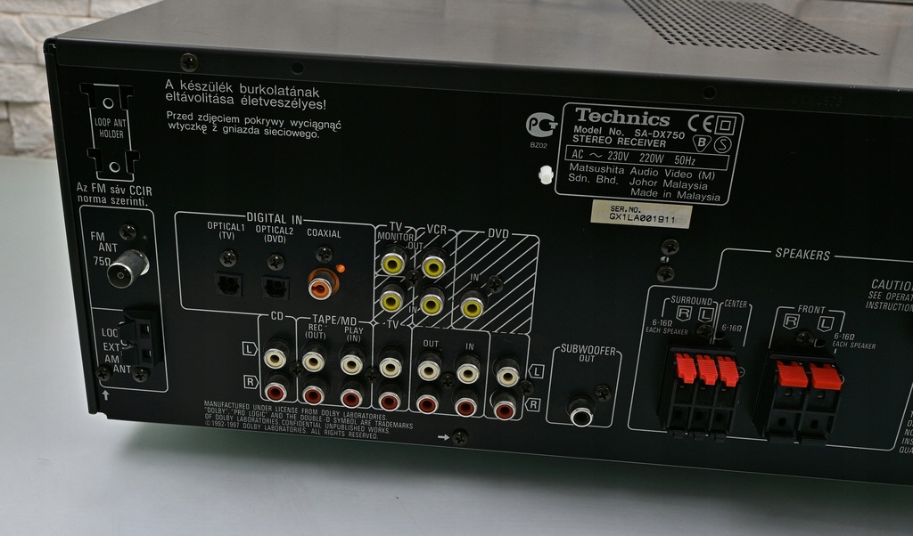 TECHNICS SA DX750 to doskonały sprzęt zarówno do odsłuchu audio (stereo) jak i do dźwięku przestrzennego (kina domowego 5+1) Amplituner ma wbudowane dekodery Dolby Digital i DTS !!!. Amplituner ma doskonały czysty, dynamiczny i mocny dźwięk co czyni go najlepszym amplitunerem w swojej klasie.