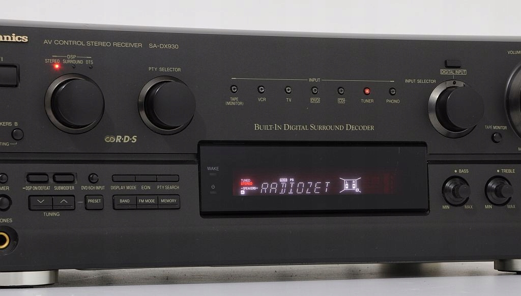 SA-DX930 jest topowym amplitunerem Technicsa. Jest to w sumie jeden z najlepszych modeli tej firmy. Sprzęt wyposażony jest w dekoder Dolby Digital DTS, więc możemy oglądać filmy z najlepszymi efektami dźwiękowymi Jest w bardzo dobrym stanie technicznym. Amplituner zbudowano bardzo solidnie, charakteryzuje sie bardzo mocnym dynamicznym dźwiękiem.