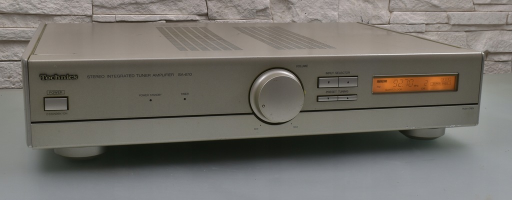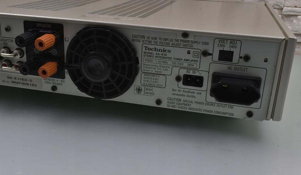 Technics E10 jest urządzeniem pochodzącym z legendarnej serii EXCLUSIVE E10 . Jest to sprzęt o ponadczasowym wyglądzie. Ma nieduże rozmiary wygląda na cienki i smukły, większość funkcji ukryto za klapką , a wewnątrz mamy solidne zasilanie na 2 transformatorach, dwa odseparowane układy co przekłada się na maksymalną redukcję szumów, duże kondensatory i potężna końcówkę mocy( podwójną hybrydę BC MODULE, będącą jednym z największych osiągnięć Technisa w dziedzinie końcówek mocy, układ chłodzony wentylatorem). Amplituner pięknie się prezentuje ale również pięknie gra.