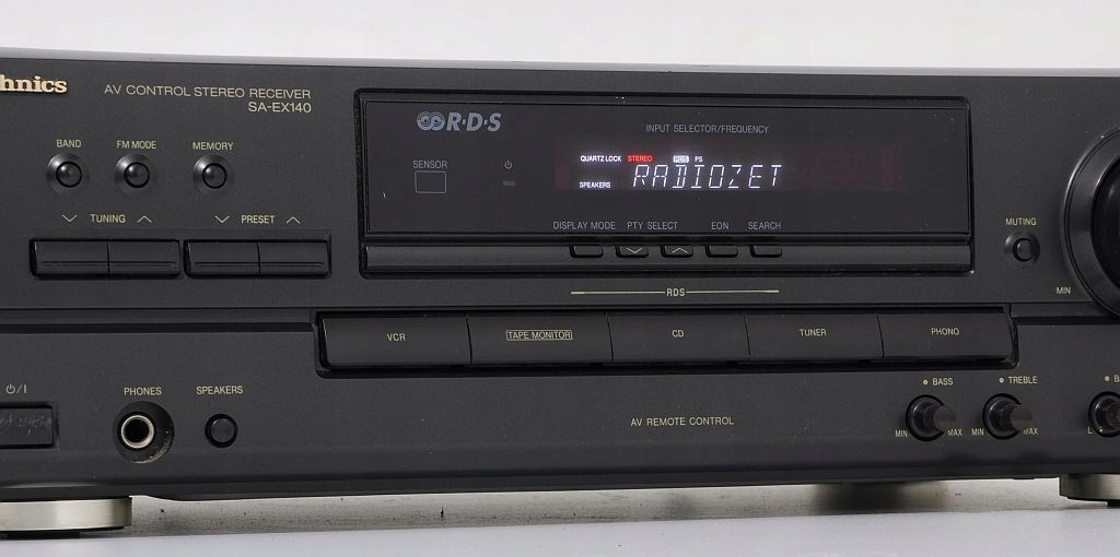 - Przełączniki źródeł dźwięku (Tuner, Phono, CD, Tape Monitor/VCR2, VCR1)