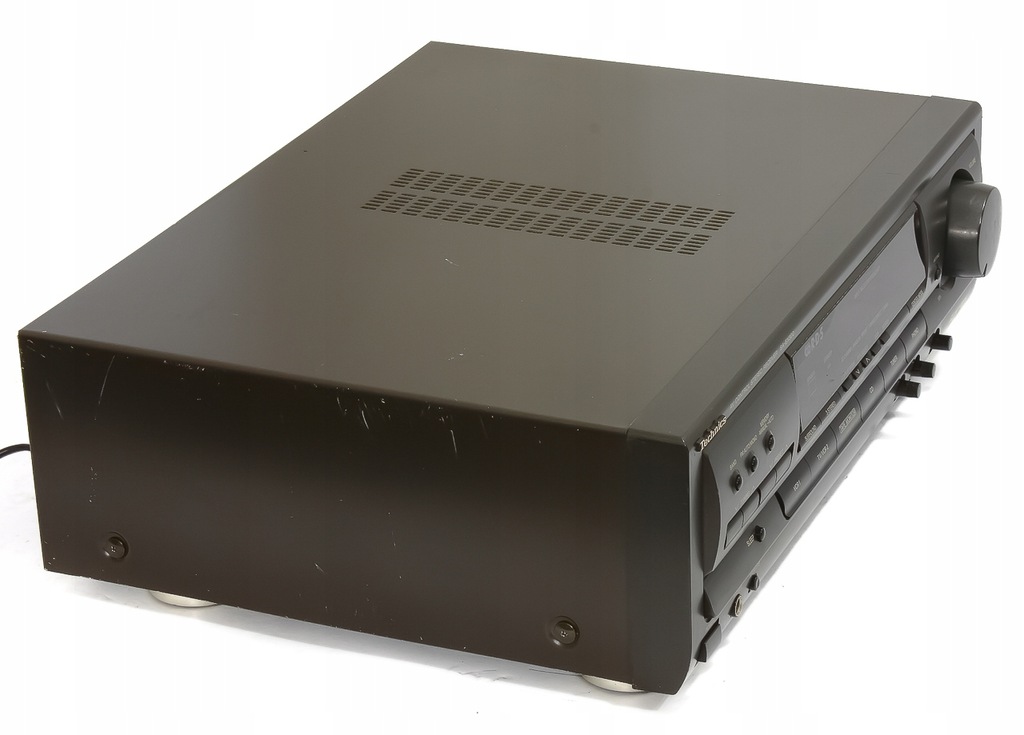 Przedmiotem sprzedaży jest amplituner firmy Technics. Urządzenie w przeciwieństwie do "nowoczesnych", plastikowych wzmacniaczy / amplitunerów potrafi zagrać i to naprawdę bardzo dobrze. Urządzenie doskonale się spisuje zarówno w trybie stereofonicznym, jak i w trybie kina domowego. Sprzęt zbudowany na porządnej elektronice - solidnej sekcji zasilania, porządnych tranzystorach i bogaty w markowe dodatki, jak np. potencjometr firmy "Alps". Amplituner dysponuje okazałą mocą 2 x 50 WATT / 8OHM DIN w trybie stereo lub 2 x 40 W (front) + 40 W (centralny) + 40 W (surround) / 8OHM w trybie kina domowego, co pozwala napędzić duże i mocne kolumny. Podane wartości mocy są przy wysokiej impedancji, zatem moce są bardzo przyzwoite. Ponadto do amplitunera można podłączyć subwoofera aktywny. Dźwięk wzmacniacza przypadnie do gustu nawet wymagającemu słuchaczowi - każde pasmo jest słyszalne. Oczywiście nie brakuje głębokiego i mocnego basu oraz miłych dla ucha tonów środkowych. Wokale brzmią naturalnie, całość jest spójna (lecz niezlana) i przestrzenna. Urządzenie posiada odbiornik radiowy wraz z systemem RDS. Radio bez problemu łapie sygnał RDS i stereo już na kawałku kabla. Z anteną zewnętrzną lub kablową uda się osiągnąć wysoki poziom jakości. Sprzęt bardzo ładnie się prezentuje - masywna obudowa została połączona z miłym dla oka, nowoczesnym designem. Obsługa urządzenia jest łatwa i intuicyjna za sprawą dobrze rozmieszczonych przycisków i pokręteł. Polecam!!!
