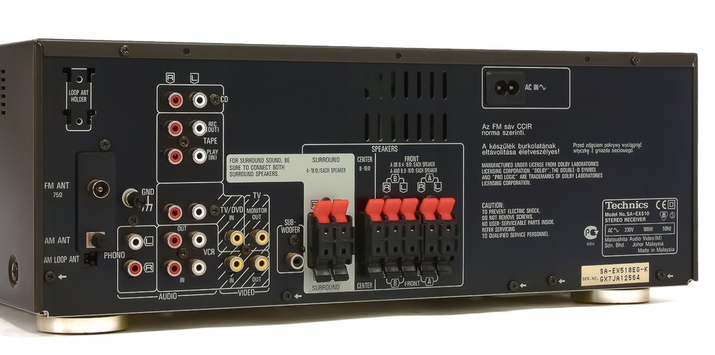 Na sprzedaż mam bardzo ładny i świetnie brzmiący amplituner kina domowego Technicsa. Sprzęt wyposażony jest w dekoder Dolby Pro Logic. Polecam każdemu komu zależy na niezawodności i również dobrym stereo. Model ten cechuje doskonałe wyważenie wszystkich tonów z obszerną regulacją. Doskonały amplituner zarówno do odsłuchu audio (stereo), jak i do dźwięku przestrzennego (kina domowego). Amplituner ma wyjście na kolumny stereo lub na 6 głośników do dźwięku przestrzennego (główne, efektowe, centralny plus wyjście woofer (subwoofer aktywny). Sprzęt wykonany z użyciem najlepszych, japońskich materiałów i technologii, z wręcz drobiazgową dbałością o szczegóły. Należące do tej firmy komponenty Hi-fi to urządzenia wyjątkowe, przeznaczone dla wymagających odbiorców. Przynależność do rodziny Technics jest swoistą gwarancją reprodukcji dźwięku na najwyższym poziomie. Polecam!