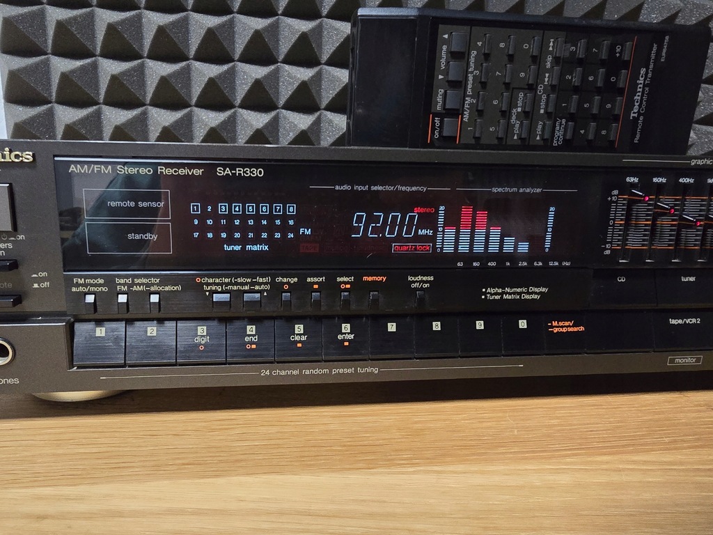 NA SPRZEDAŻ PIĘKNY AMPLITUNER STEREO Z KOREKTOREM GRAFICZNYM TECHNICS SA-R330 WRAZ Z ORYGINALNYM PILOTEM W SUPER STANIE WIZUALNYM JAK I TECHNICZNYM. SPRZĘT W PEŁNI SPRAWNY - WYŚWIETLACZ ŚWIECI BARDZO ŁADNIE JAK NOWY. SPRZĘT BARDZO ŁADNIE GRA PRAWDZIWIE JAPOŃSKA MASZYNA. W ZESTAWIE KABEL ZASILAJĄCY I ORYGINALNY DEDYKOWANY PILOT! URZĄDZENIE W JEST W SUPER STANIE JAK NA SWÓJ WIEK. POTENCJOMERT GŁOŚNOŚCI OBRACA SIĘ Z PILOTA . GŁOWICA RADIOWA PO REGULACJI IDEALNIE ODBIERA WSZYSTKIE STACJE.