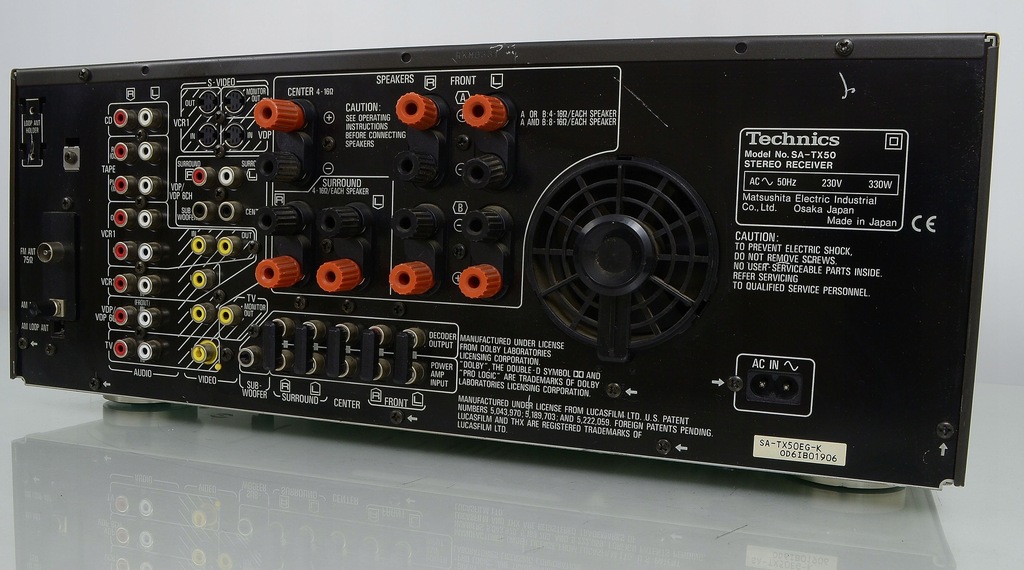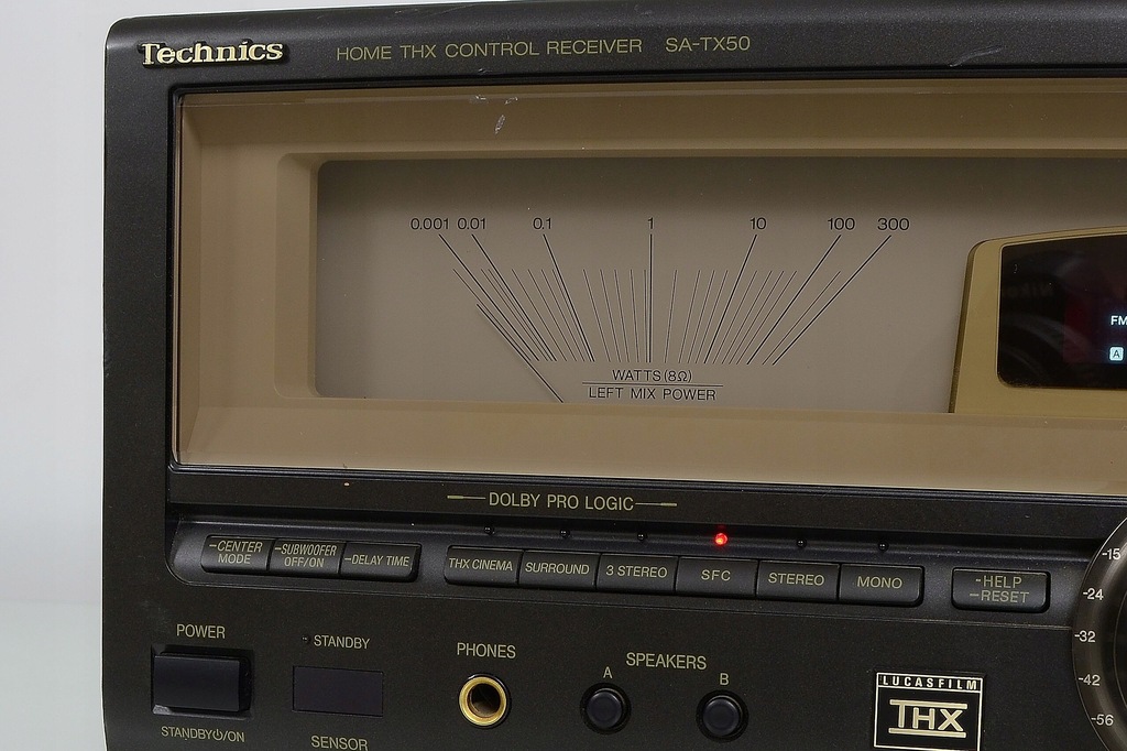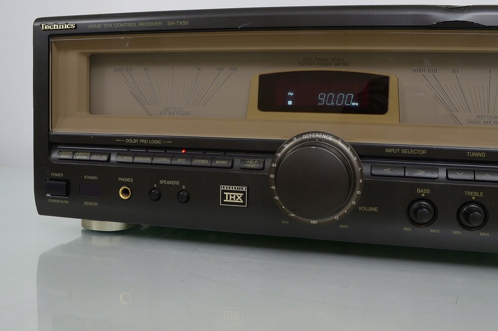 Technics SA-TX50 THX to świetny amplituner dużej mocy. Ma wbudowane dekoder Dolby ProLogic THX. Oprócz tego posiada 10 zdefiniowanych trybów pola dźwiękowego (Hall, Club, Live, Theater, Sim Surround). Model ten jest jedną z najpiękniejszych konstrukcji Technicsa. Jego design jest po prostu niesamowity. Efekt wizualny jest przepiękny . Amplituner zwraca na siebie uwagę nawet laika. Skonstruowany jest na ogromnym ciężkim transformatorze i świetnych kondensatorach. Dzięki zastosowaniu wysokiej klasy komponentom sprzęt zapewnia niesamowicie mocny i czysty dźwięk.