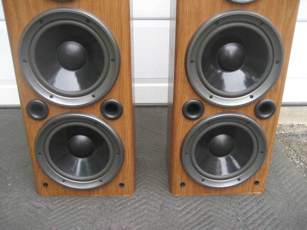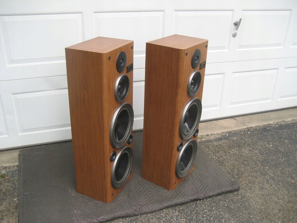 Kolumny zbudowano z najwyższą dbałością, są ciężkie i stabilne, charakteryzują się wysoką jakością dźwięku i bardzo dobrą stereofonią.Kolumny cieszyly sie wzieciem na rynku w USA. Bas jest mocny i dynamiczny, wysokie i średnie tony są czyste i klarowne. A wszystko to dzięki zastosowaniu przetworników najwyższej jakości.Kolumny jak i maskownice w b.dobrym stanie optycznym. Minimalne slady uzytkowania.