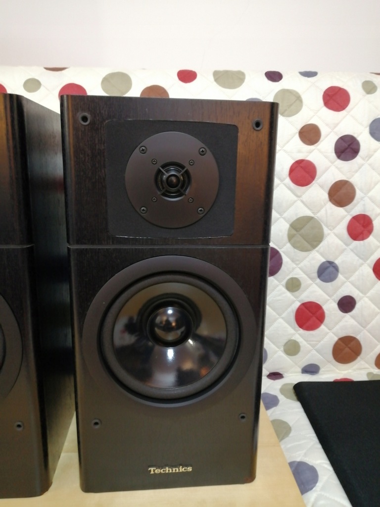 Kolumny podstawkowe Technics SB-EX2 czarne z maskownicami w stanie wzorowym parametry na tabliczce znamionowej. Polecam świetne kolumny super grają bez wad ukrytych.