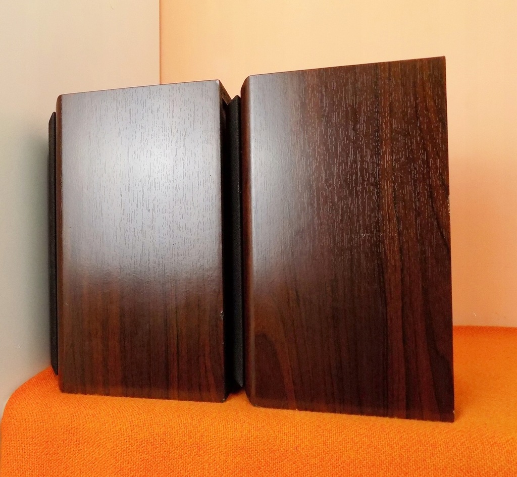 Kolumny 100% sprawne i oryginalne, wszystkie głośniki w bardzo dobrym stanie. Głośnik niskotonowy o średnicy 13cm z piankowym zawieszeniem w idealnym stanie. Wysokotonowy to jedwabne kopułki o średnicy 25mm. Kolumny w bardzo dobrym stanie, posiadają kilka drobnych rys i ubytki okleiny. Maskownice w bardzo dobrym stanie.Ułamany jeden zaczep od maskownicy.
