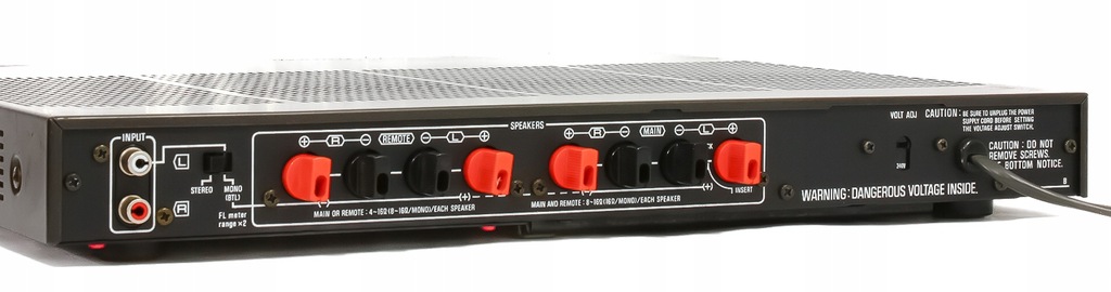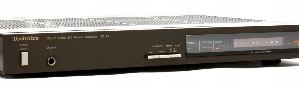 Przedmiotem aukcji jest znakomita końcówka mocy japońskiej marki Technics. Model SE-A7 pochodzi z najlepszego okresy działalności firmy. Wzmacniacz charakteryzuje się budową dual-mono (dwa osobne kanały z dwoma niezależnymi ekranowanymi transformatorami) oraz innowacyjnym układem chłodzenia. Wzmacniacz nie był nigdy naprawiany czy modyfikowany. Wzmacniacz mocy może pracować jako monoblok, tryb pracy wybiera się przełącznikiem z tyłu urządzenia. Zapraszam do zakupu!