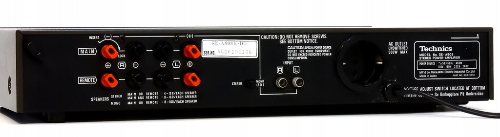 Do sprzedania doskonała końcówka mocy, będąca częścią hi-endowego wzmacniacza dzielonego - TECHNICS SE-A808. Sprzęt pochodzi z czasów, kiedy jakość zdecydowanie górowała nad marketingiem. Już sam wygląd dowodzi tego stwierdzenia. Sprzęt jest solidny, masywny a jednocześnie piękny. Prosty, harmonijny design powoduje, że końcówka pasuje do każdego wnętrza i każdego stylu. Wykonana jest z najwyższej jakości komponentów, co po prostu słuchać. Polecam!