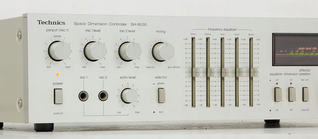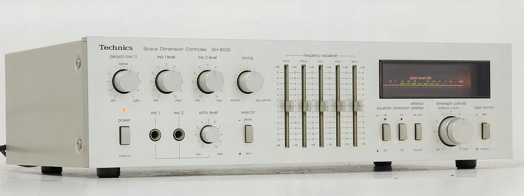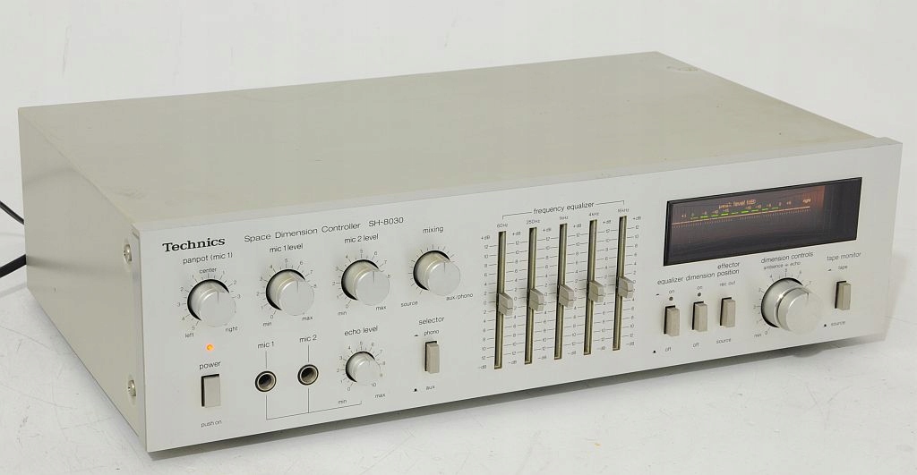 Jak działa i jakie efekty daje takie urządzenie pisać nie trzeba. Profesjonalny korektor graficzny firmy TECHNICS, umożliwiający „czystą” korekcję, bez zbędnych procesorów DSP i innych niepotrzebnych udziwnień. W oferowanym urządzeniu korekcji dźwięku możemy dokonywać za pomocą 5 regulatorów. Wbudowany wyświetlacz posiada różne rodzaje wyświetlania. Jest to rozbudowane urządzenie do którego można podłączyć gramofon , dwa mikrofony, i inne źródło. Jest to doskonałe rozwiązanie np. dla Dj'a :) Podłączając dwa źródła dźwięku możemy miksować dwa utwory za pomocą pokrętła mixing. Jednym ze źródeł może być nawet gramofon ponieważ mamy do tego specjalne wejście PHONO. Ciekawą propozycją jest regulowany poziom echa dla mikrofonów. O regulacji natężenia dźwięku dla każdego mikrofonu osobno nie wspominam bo to oczywiste w tej klasie urządzeń:) Efekt pogłosu dla muzyki także jest dostępny, od razu mówię że jest on nie do uzyskania przez żadne komputerowe equalizery i symulatory... Przedni panel wykonany z aluminium. Świetna okazja do uzupełnienia zestawu o dodatkowy segment.
