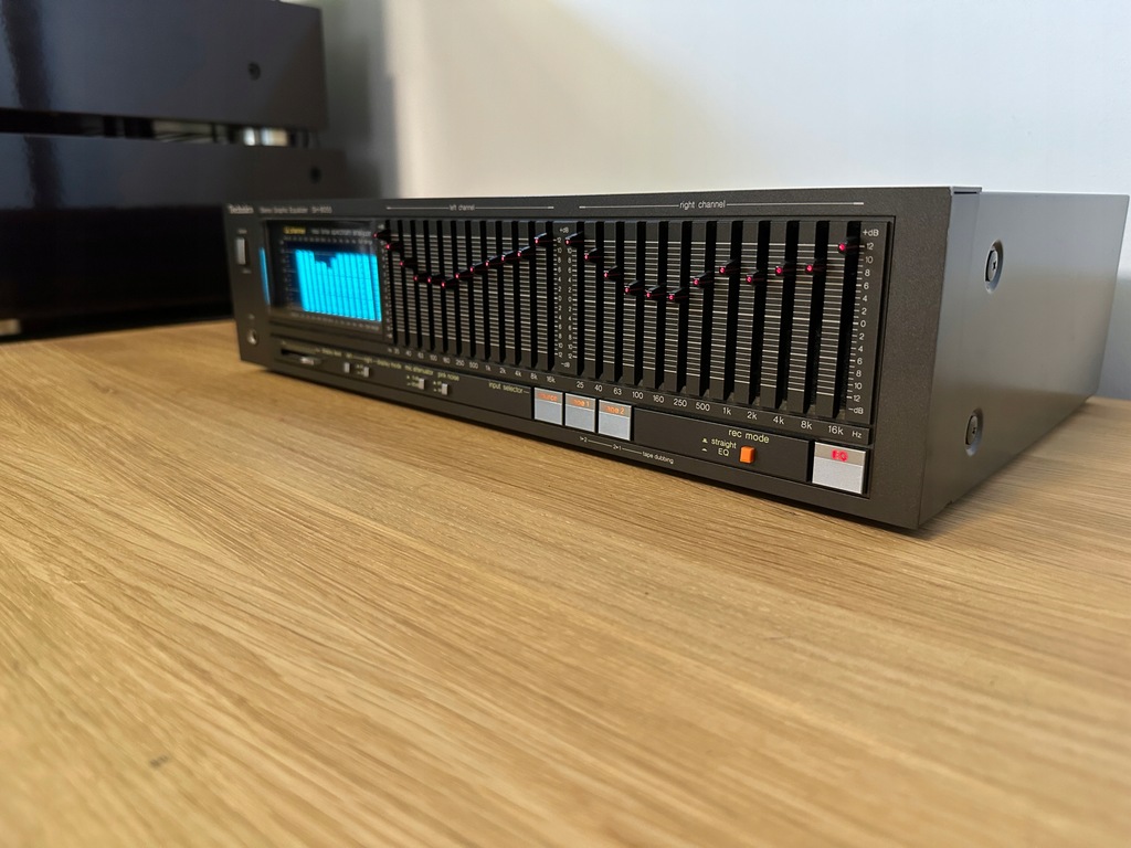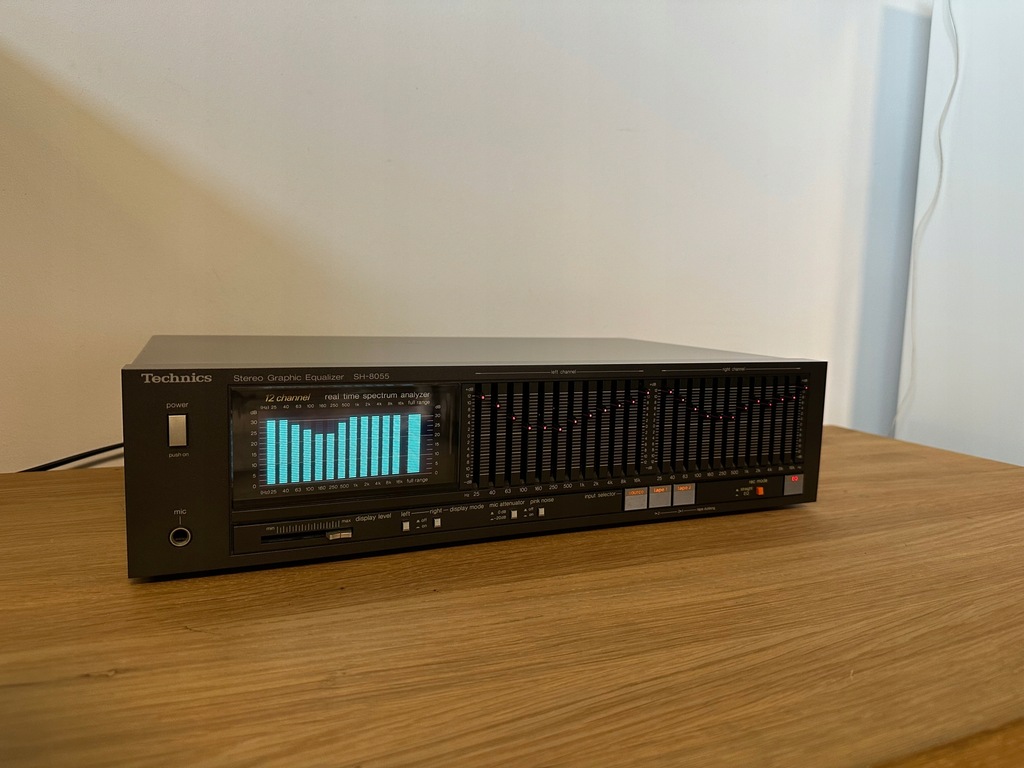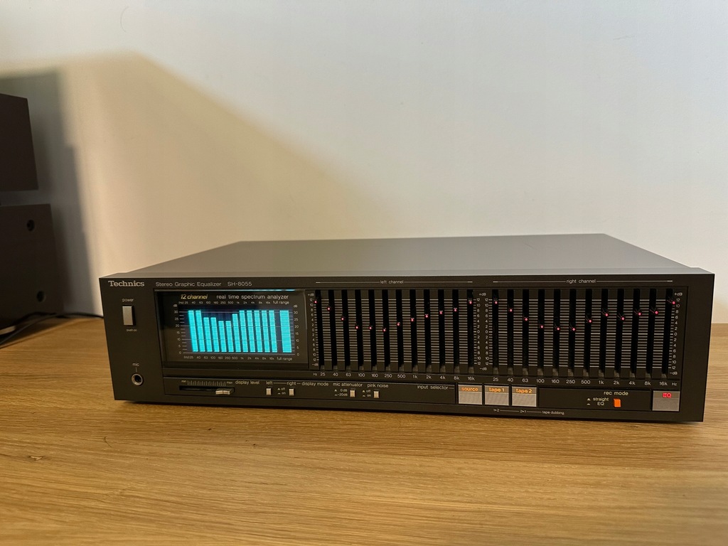 Producent: Technics Model: SH-8055 Typ: Korektor Lata budowy: 1983 - 1989 Kolory: czarny Pobór mocy: 17W Wymiary (szer. x wys. x gł.): 430 x 108 x 272 mm Waga: 4,1 kg Nowa cena ok.: 900 DM znajomości Liczba wejść: Maksymalne napięcie wejściowe: 8 V~ Impedancja wejściowa: 47 kOhm Czułość mikrofonu: ponad -74 dBV/µ bar Tłumienie mikrofonu: -20 decybeli Złącze mikrofonu (dla analizatora widma w czasie rzeczywistym) Stereo Line IN i Line OUT (od i do wzmacniacza) Taśma stereofoniczna 1 Nagrywaj i odtwarzaj Taśma stereofoniczna 2 Nagrywaj i odtwarzaj Liczba wyjść: Zakreślać: Dane techniczne Pasmo przenoszenia: 5 Hz do 100 kHz Maksymalne napięcie wyjściowe: 8 V~ Znamionowe napięcie wyjściowe: 1 V~ Znamionowe THD: 0,002% przy 1 kHz, 0,003% od 20 Hz do 20 kHz Współczynnik szumu: 102 dB, 110 dB IHF A Separacja kanałów: 70 dB Kontrola odpowiedzi częstotliwościowej: +12 dB do -12 dB Częstotliwości środkowe: 25 Hz, 40 Hz, 63 Hz, 100 Hz, 160 Hz, 250 Hz, 500 Hz, 1 kHz, 2 kHz, 4 kHz, 8 kHz, 16 kHz Różowy szum: 50 mV Kontrola poziomu wyświetlania Przełącznik wyświetlacza dla lewego i/lub prawego kanału Przełącznik tłumienia mikrofonu Różowy przełącznik szumów 3 przełączniki wyboru wejść podświetlane od wewnątrz Tryb nagrywania prosty/EQ EQ aktywny/deaktywny podświetlany od wewnątrz 12 regulatorów częstotliwości dla lewego i prawego kanału, podświetlonych czerwoną diodą LED