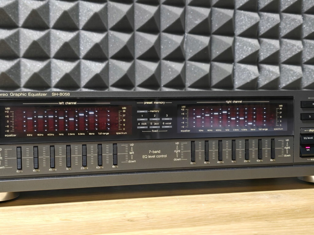 NA SPRZEDAŻ KULTOWY I DOCENIANY KOREKTOR GRAFICZNY EQUALIZER TECHNICS SH-8058. WYŚWIETLACZ URZĄDZENIA ŚWIECI JAK NOWY UNIKATOWY STAN WYŚWIETLACZA NIE WYPALONY. SPRZĘT WIZUALNIE DOKLADNIE W TAKIM SAMYM STANIE JAK NA ZDJĘCIACH. 100% SPRAWNY I ORYGINALNY.
