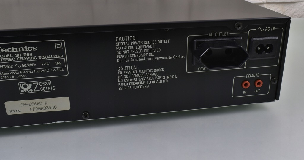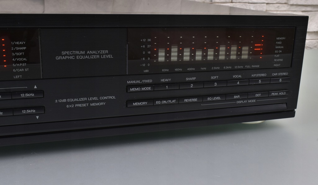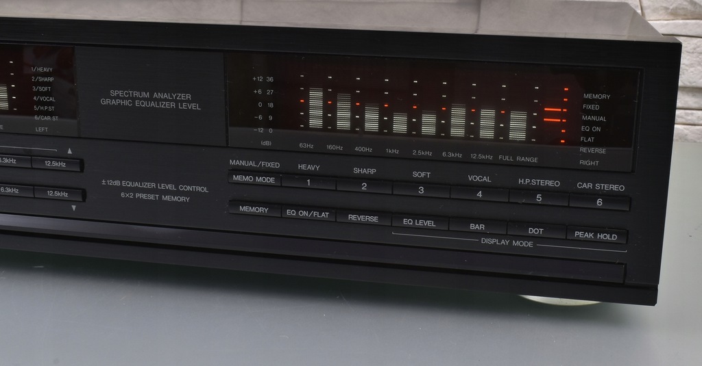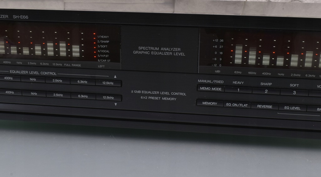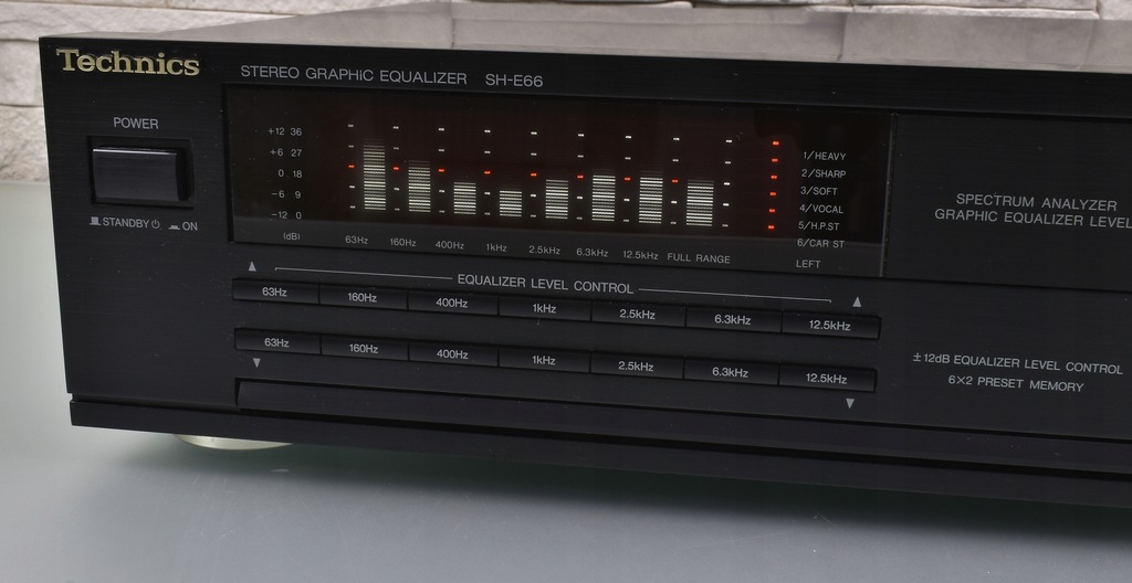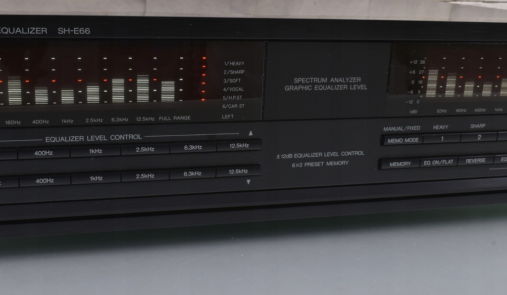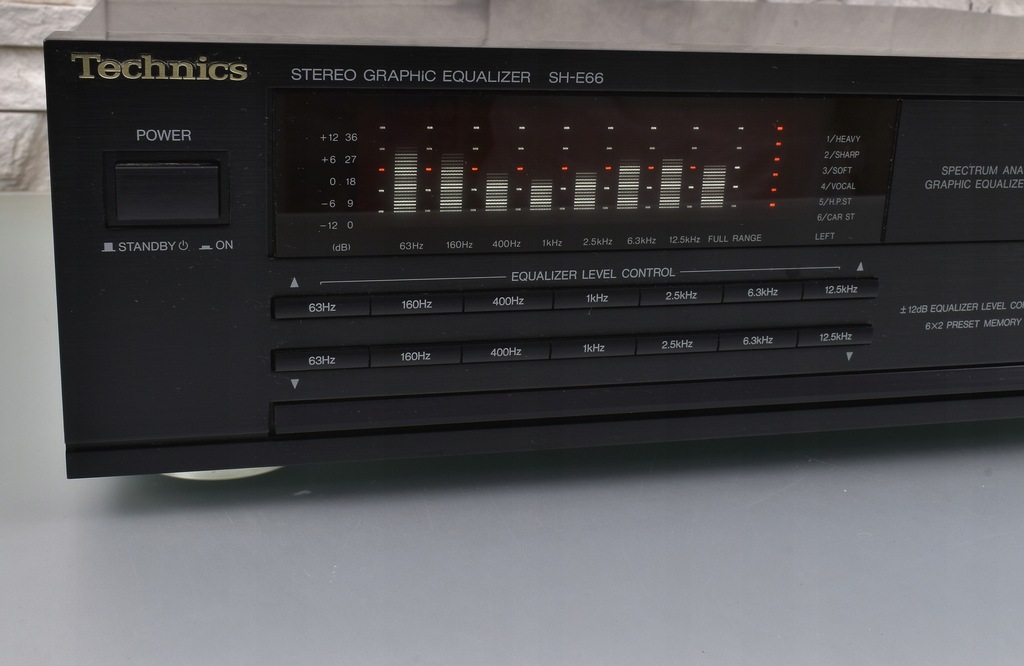 Witam serdecznie. Przedmiotem tej aukcji jest elektroniczny korektor graficzny z analizatorem widma firmy Technics SH-E66, przeznaczony do zestawów midi (36 cm). Oczywiście można go połączyć też z każdym dowolnym sprzętem. Korektor jest w bardzo dobrym stanie technicznym oraz bardzo dobrym wizualnym. Dużym plusem tego egzemplarza jest niewypalony wyświetlacz, świeci mocno na biało jak . Zdjęcia przedstawiają sprzedawany egzemplarz. Jest to bardzo udany model z najlepszego okresu działalności firmy, technicznie to taka mniejsza 70-tka. Korektor posiada duży zakres regulacji dźwięku stanowiąc doskonałe uzupełnienie każdego zestawu audio. Poniżej kilka podstawowych cech oraz parametrów technicznych :