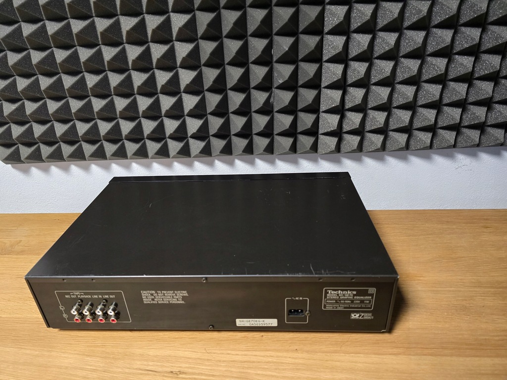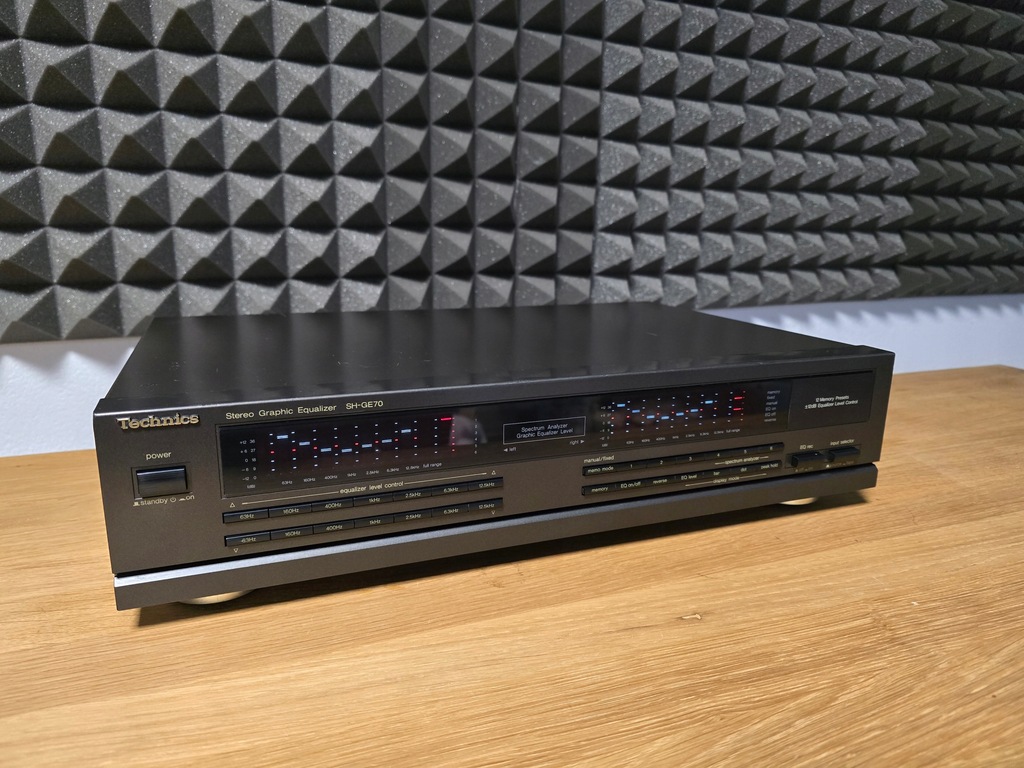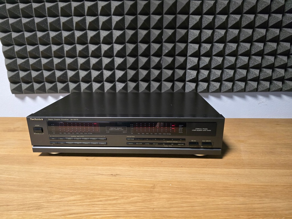 Producent: Technics Model: SH-GE 70 Typ: Korektor Lata budowy: 1990 - 2003 Wyprodukowano w: Japonii Kolor: czarny Technics Zdalne sterowanie: Pobór mocy: 11 W (6,5 W w trybie gotowości) Wymiary: 430 x 102 x 280 mm (szer. x wys. x gł.) Waga: 2,9 kg Nowa cena ok.: 399 DM Znajomości Liczba wejść: Przełącznik sygnału wejściowego: 150mV/1V, 47kOhm Liczba wyjść: Wyjście: 1 V, 600 omów, maksymalnie 8 V (1 KHz, THD 0,01% Dane techniczne Regulowane pasma częstotliwości: 2 x 7 Zakres regulacji: +/- 12 dB Pasmo przenoszenia: 5 Hz ~ 100 kHz Stosunek sygnału do szumu: 98 dB THD: 0,005%