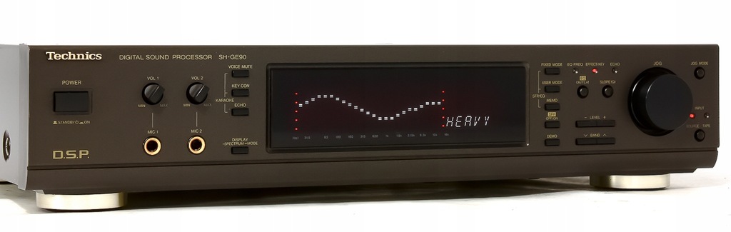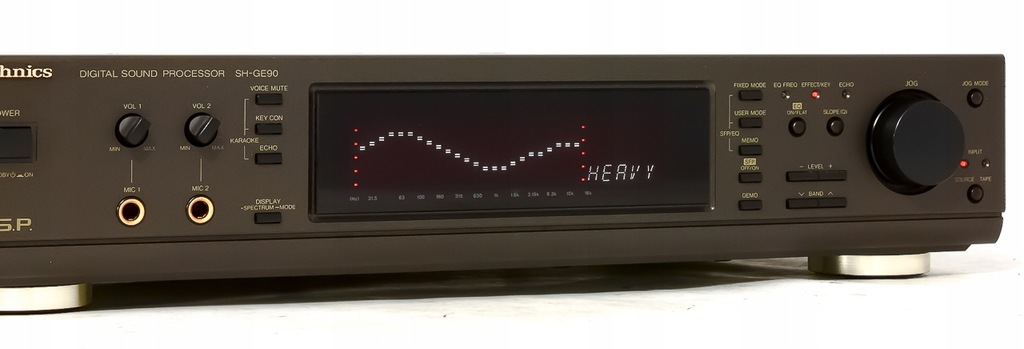 Technics SH-GE90 jako cyfrowy procesor/korektor doskonale sprawdza się, zarówno do systemów DVD, jak i AUDIO – dzięki niemu można samodzielnie dostroić dźwięk do swoich indywidualnych upodobań. Dodatkowo posiada on wiele ciekawych funkcji, jak np. Karaoke. Procesor wyposażony jest również w duży, bardzo czytelny wyświetlacz pokazujący zakres pasma odtwarzanego dźwięku, który robi naprawdę duże wrażenie. Sprzęt ten ma bardzo wysokie parametry dźwiękowe oraz duże możliwości dostosowania barwy dźwięku wedle naszego uznania (możemy dzięki niemu mieć np przepotężny basior). Ma możliwość skonfigurowania własnych ustawień i zapisania ich. Analizator widma może pracować w 3 trybach wyświetlania. Możliwości tego korektora są ogromne, pozwala odkryć każdy zestaw audio na nowo, może dodać basu , przejrzystości , po prostu ustawić dźwięk tak jak lubimy. I wiadomo strona wizualna - nic tak nie zwraca uwagi jak słupki korektora skaczące w rytm muzyki.