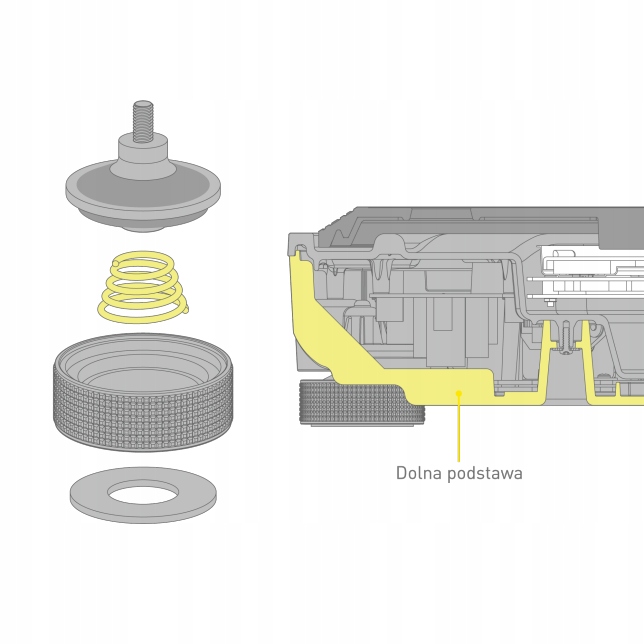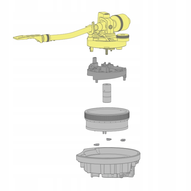 Podstawa – element niezbędny z punktu widzenia redukcji drgań zewnętrznych – odziedziczyła technologię udoskonalania jakości dźwięku, której rozwój stał się możliwy dzięki opracowaniu wysokiej klasy gramofonów. Odlewane z aluminium podstawa jest sztywno połączona ze specjalnym materiałem składającym się z tworzywa ABS zmieszanego z włóknem szklanym, co umożliwiło uzyskanie dwuwarstwowej struktury. Połączenie tego wyjątkowego materiału o dużej sztywności i metalowej podstawy zwiększyło sztywność konstrukcji i tłumienie drgań, tworząc solidną obudowę zapewniającą piękne odtwarzanie dźwięku. Izolator gumowo-sprężynowy zapewnia optymalną charakterystykę częstotliwościową. Nie tylko gwarantuje to wysoką jakość dźwięku i doskonałą odporność na sprzężenia akustyczne, lecz również skutecznie eliminuje drgania zewnętrzne w warunkach odtwarzania z wysokim poziomem dźwięku.