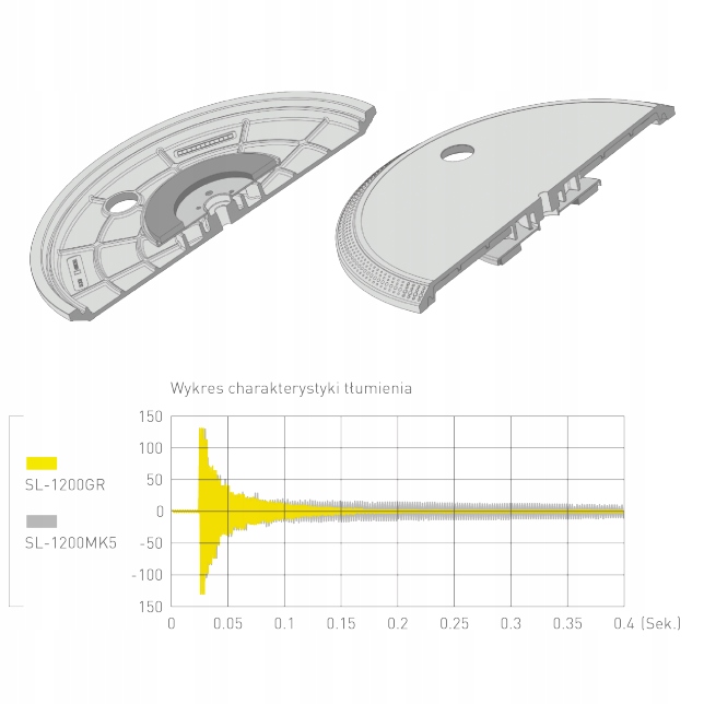 Talerz gramofonu: Odlew aluminiowy, Średnica: 332 mm, Masa: ok. 2,5 kg (w tym mata gumowa)