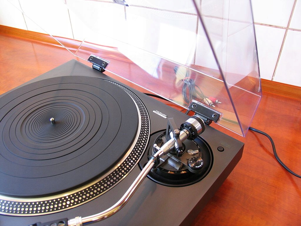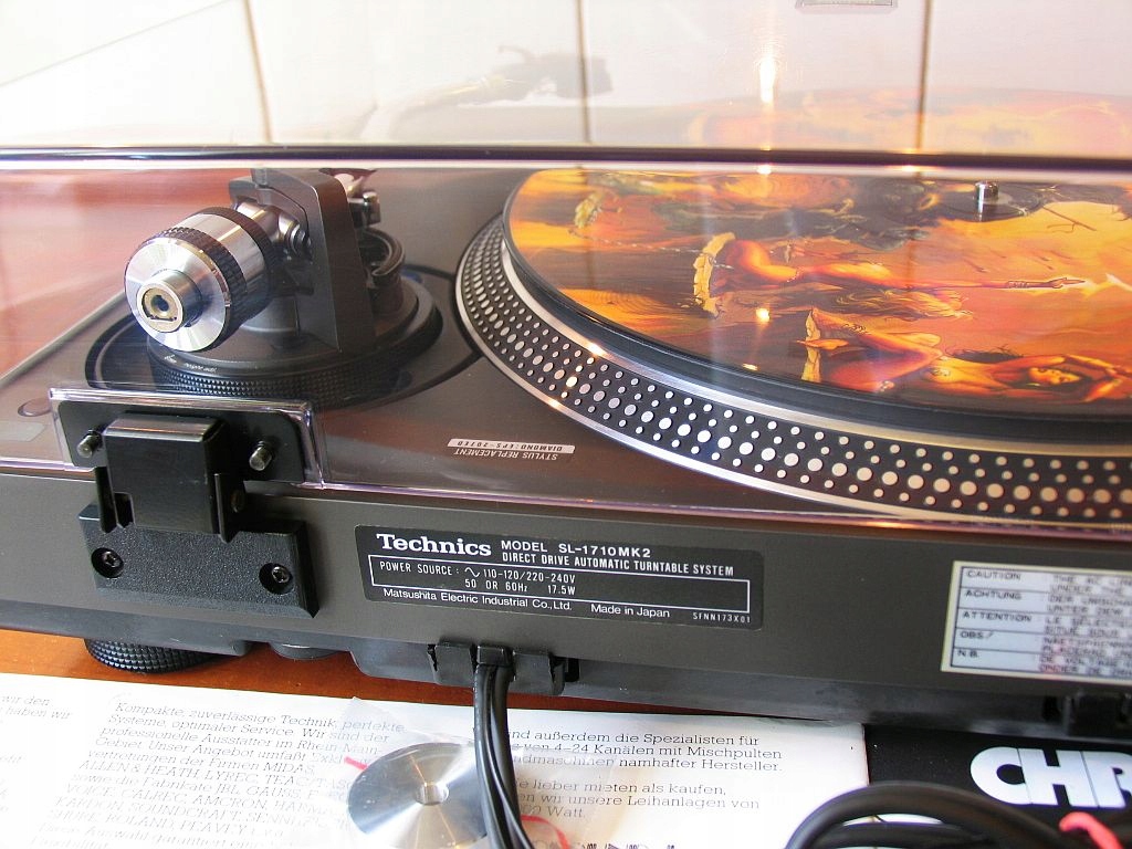Wysokiej klasy TOP gramofon Vintage Technics SL-1710 Mk2. Prywatna kolekcja Vintage - gramofon zachowany w perfekcyjnym stanie - mało używany ( real foto ). Jest to udomowiona wersja gramofonu Technics SL-1210 Mk2, która dodatkowo posiada elektrycznie podnoszone i opuszczane ramie + włącznik automatycznego powrotu ramienia po skończeniu odtwarzania płyty co jest bardzo przydatne. Od nowości 100 % oryginał, Napęd Direct Drive, Stroboskop, Anti Skating, Obroty 33 / 45 ( regulowane ), oryginalną wkładka z igłą ( Technics ) w super stanie, pokrywa bardzo ładna - w komplecie oryginalny aluminiowy toczony krazek do singli ( Technics ).