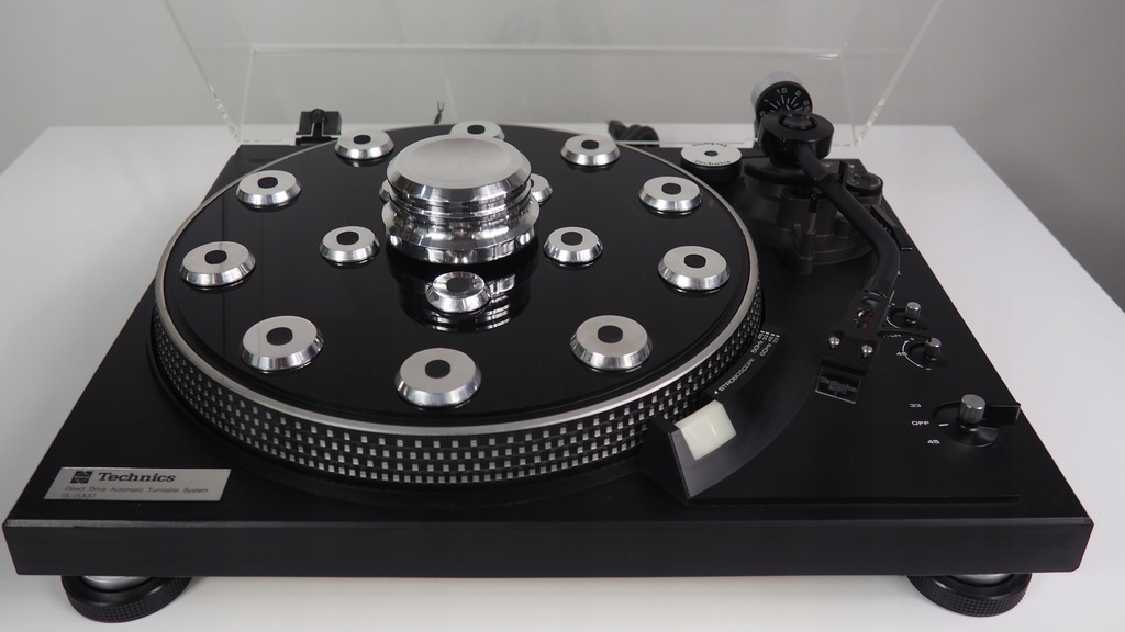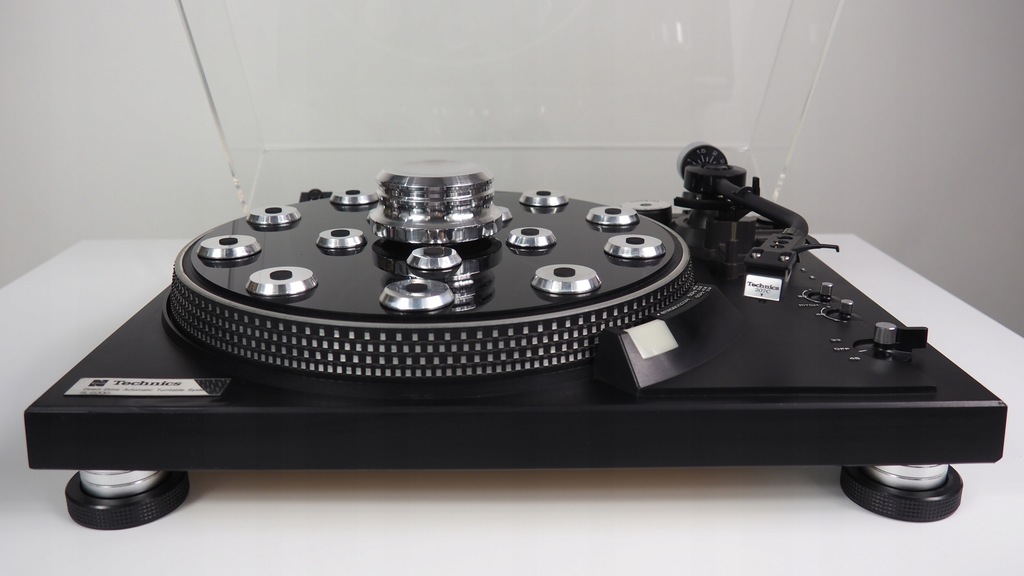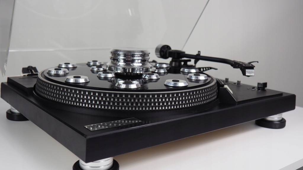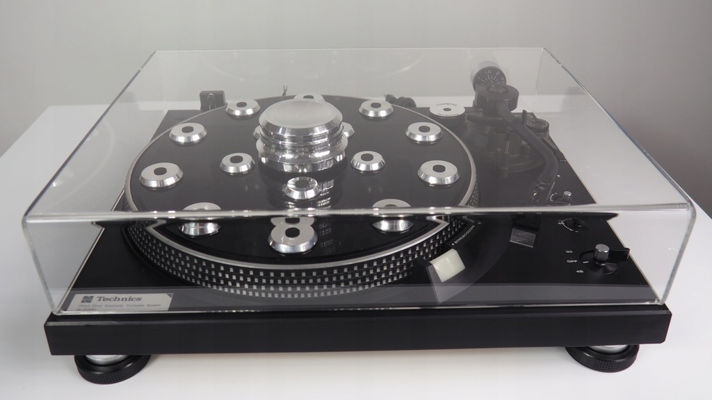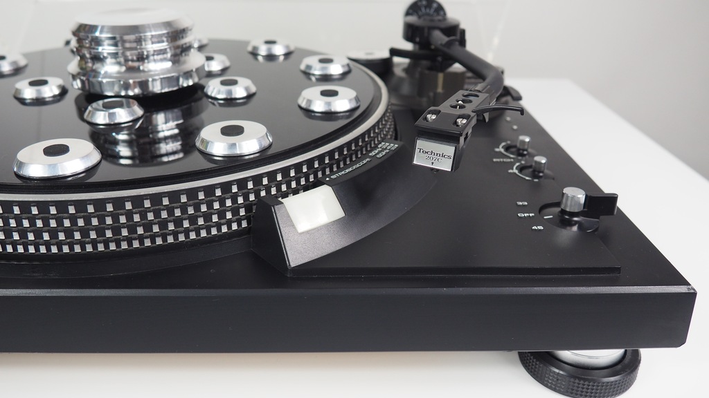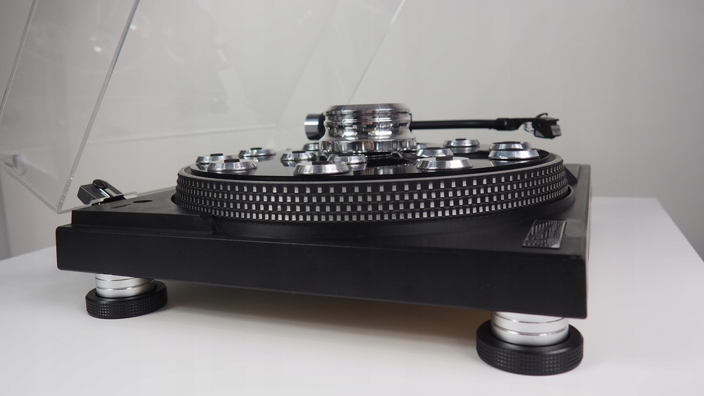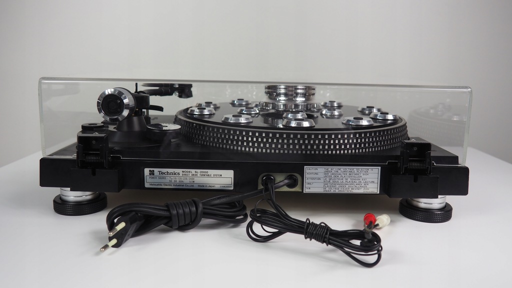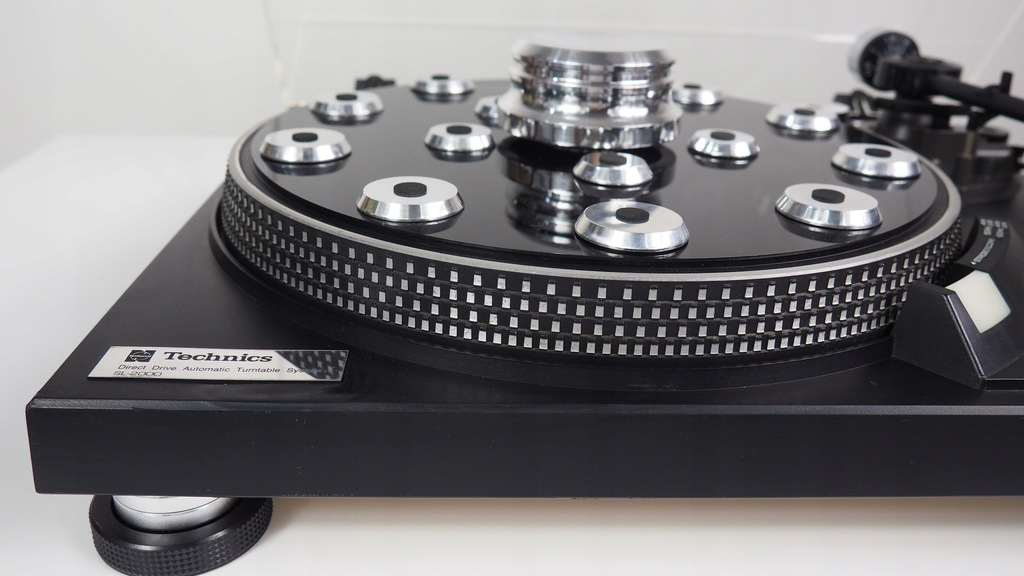 Gramofon Technics SL-2000, stan bardzo dobry z minusem. Ten minus to delikatnie uszkodzony starty rant z lewej strony gramofonu w dolnej części, co widoczne jest tylko z bliska.